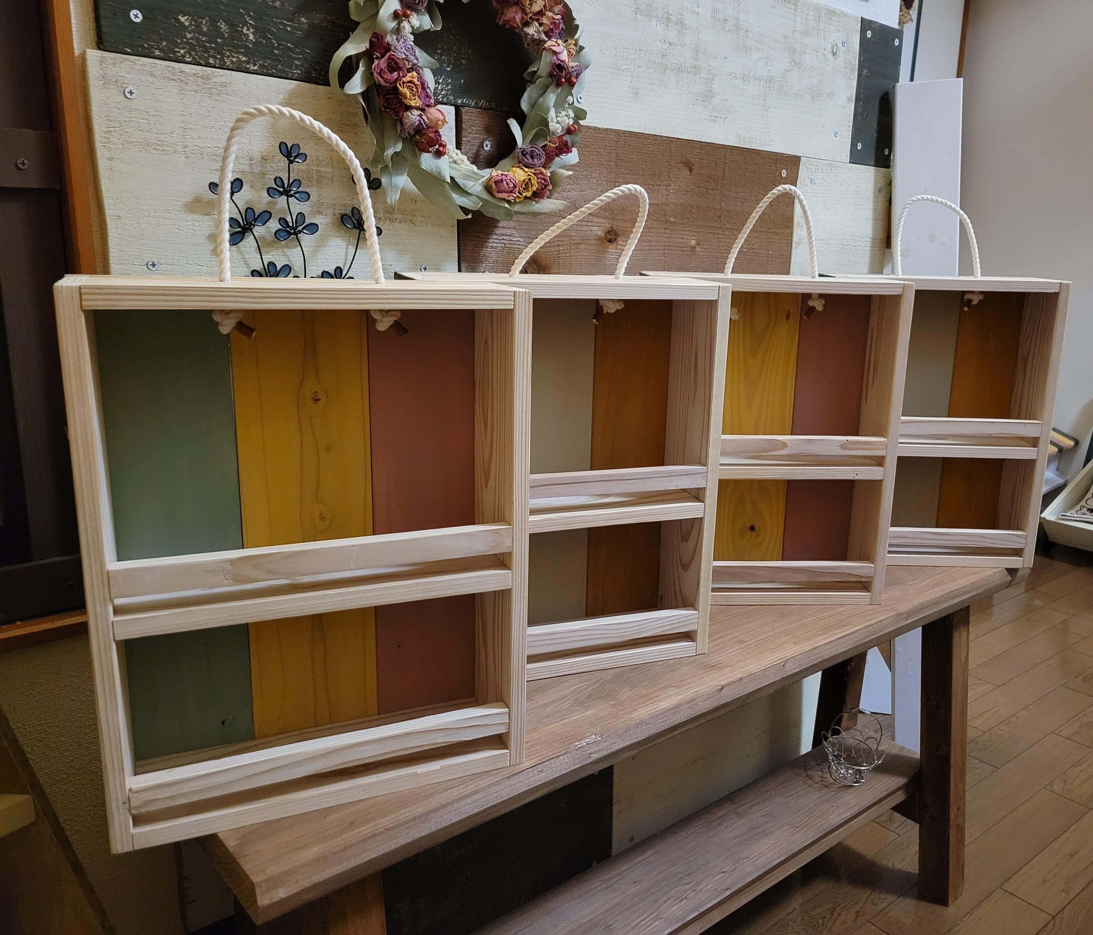 トップ > その他 > 持ち運びができるスパイスラック🍴 そらざぶとん 2023/03/25 18:15 持ち運びができるスパイスラック🍴 旦那さんと一緒に2つ作る予定だったのが、勢いで4つ作ってしまいました😂 4つもどうするの➰❗どこに置くの➰😱 あ~でも楽しく作れたからまぁいいかな🎵 いつも最後には『まぁいいか❗』 側面にはステンシル。ミルクが可愛いでしょ🎵解決にならない😂😂😂 いいね 共有する 共有する X LINE リンクをコピー コメントする 4 件の返信 (新着順) ミュートしたユーザーの投稿です。 投稿を表示 mitsuko 2023/03/26 21:00 そらざぶとんさん、こんばんは😊 たくさん出来上がりましたね~👀 ステンシルもかわいいけど、背板の3色の色合いが素敵です👏👏 スパイスラックとしてだけでなく、お部屋に飾ってもいい感じですよね~💕 いいね 返信する ミュートしたユーザーの投稿です。 投稿を表示 そらざぶとん 2023/03/27 05:35 mitsuko mitsukoさん、おはようございます👋😃 コメントありがとうございます✨ ねーまさか4つも作ることになるとはです😂 実は2つを重ねて裏側に丁番を付けて、表側に開け閉めが出来る金具を付けると、キャンプとかで持ち運びが出来るスパイスラックになるんです🎵 ですが2つを重ねると割りと重いんです。かさばるし😅 なので、片面のみ❗をお願いしてあったんですが…この通り😂😂😂 脊板の3色、可愛いですよね🎵私もそれが気に入ってます❤️ 持ち手が紐なのも好きです🍀 いいね 返信する ミュートしたユーザーの投稿です。 投稿を表示 ハリー 2023/03/25 18:55 其々綺麗に可愛くステンシルしてあっていいですね〜✌️👍👌でも、四つは🤔🤭 いいね 返信する ミュートしたユーザーの投稿です。 投稿を表示 そらざぶとん 2023/03/26 09:24 ハリー ハリーさん、おはようございます😊 コメントありがとうございます✨ ステンシルですが、初めにミルク瓶をステンシルして乾いてからMILKの文字を入れました😆🎶 なかなか可愛い❤️ …が、しかし❗4つ❗❗ すでに旦那さんからの『どこに置くの❔どうするの❔』攻撃を受けてます😂😂😂 いいね 返信する ミュートしたユーザーの投稿です。 投稿を表示 Lulu 2023/03/25 18:55 カラフルな色でクッキングが楽しくなりそうですね🤗💕 スパイス以外の見せる収納にも使えそうですね😄👍✨ いいね 返信する ミュートしたユーザーの投稿です。 投稿を表示 そらざぶとん 2023/03/26 09:19 Lulu LuLuさん、おはようございます😊 コメントありがとうございます💠 スパイス以外の使い道を考えてみますね😆🎶 それにしても4つは作りすぎました😂😂😂 いいね 返信する ミュートしたユーザーの投稿です。 投稿を表示 あにー 2023/03/25 18:54 4つも並んでいると圧巻ですね! ステキです😊 いいね 返信する ミュートしたユーザーの投稿です。 投稿を表示 そらざぶとん 2023/03/26 09:13 あにー あにーさん、おはようございます😊 コメントありがとうございます💠 ワクワクして作りましたが、旦那さんの『…で、どこに置くの❔』 あ~いつもその言葉で現実に戻される😆 後ろの板を3色にしたラックずっと作りたかったんだよー。ウフフ( *´艸`) いいね 返信する