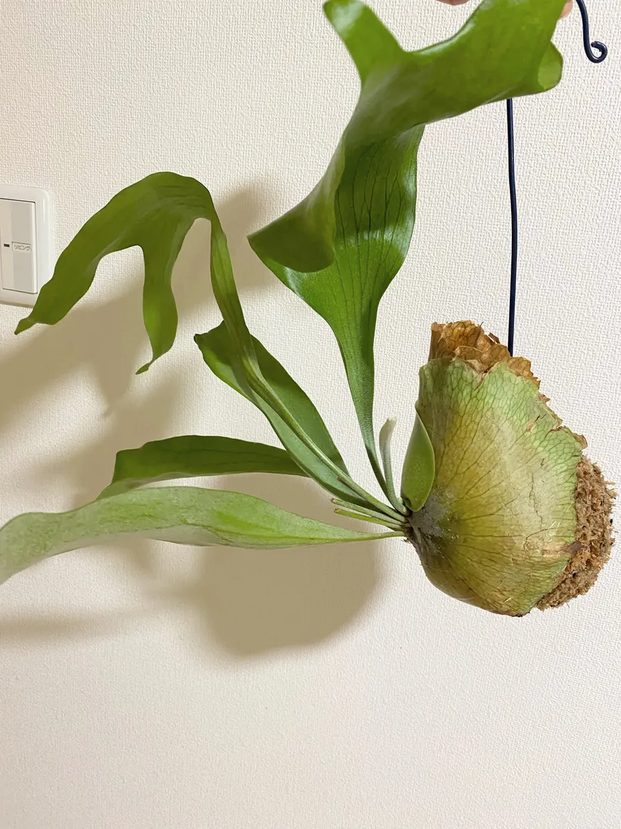 トップ > グリーン > 観葉植物 > ビカクシダ苔玉の苔増しと剪定 ぱみこ 2025/11/28 23:19 ビカクシダ苔玉の苔増しと剪定 お友達の家にお嫁に行っていたビカクシダの苔玉を猫ちゃんがイタズラして葉が折れてしまったそうで、剪定することにしました。 また葉が新しく出て来るので、4枚長い葉を切り落としました。 こんな感じにコンパクトにしました! 切った葉の根元を5センチくらい残しておきます 多肉の花芽をカットした後みたいに枯れたらスッと抜けるのが楽しいです ついでに古くなった水苔を取り除いて新しい水苔を巻きました。 もりもり育ってくれるといいなー。 いいね 共有する 共有する X LINE リンクをコピー コメントする 1 件の返信 (新着順) ミュートしたユーザーの投稿です。 投稿を表示 てんこ 2025/11/30 22:07 ぱみこ先生〜 水苔は、古いの、とった方がいいんですね〜私、まししかしてなくて、何だか汚くて😭 いいね 返信する ミュートしたユーザーの投稿です。 投稿を表示 ぱみこ 2025/11/30 23:31 てんこ 長く使い続けると、水苔も劣化してカチカチになってきます。 表面に苔が生えて緑になったり、黒ずんでいたらその部分取り除いて水苔を乗せて苔増ししています 根っこのためにも見た目にもリフレッシュしますよね いいね 返信する