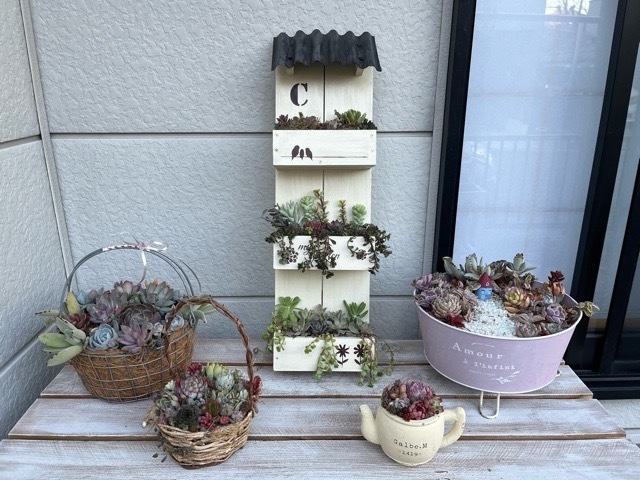 ボックス3段もあると寄せがいがありそうですよね❗❗もりもりの寄植えがいっぱいですね〜😍