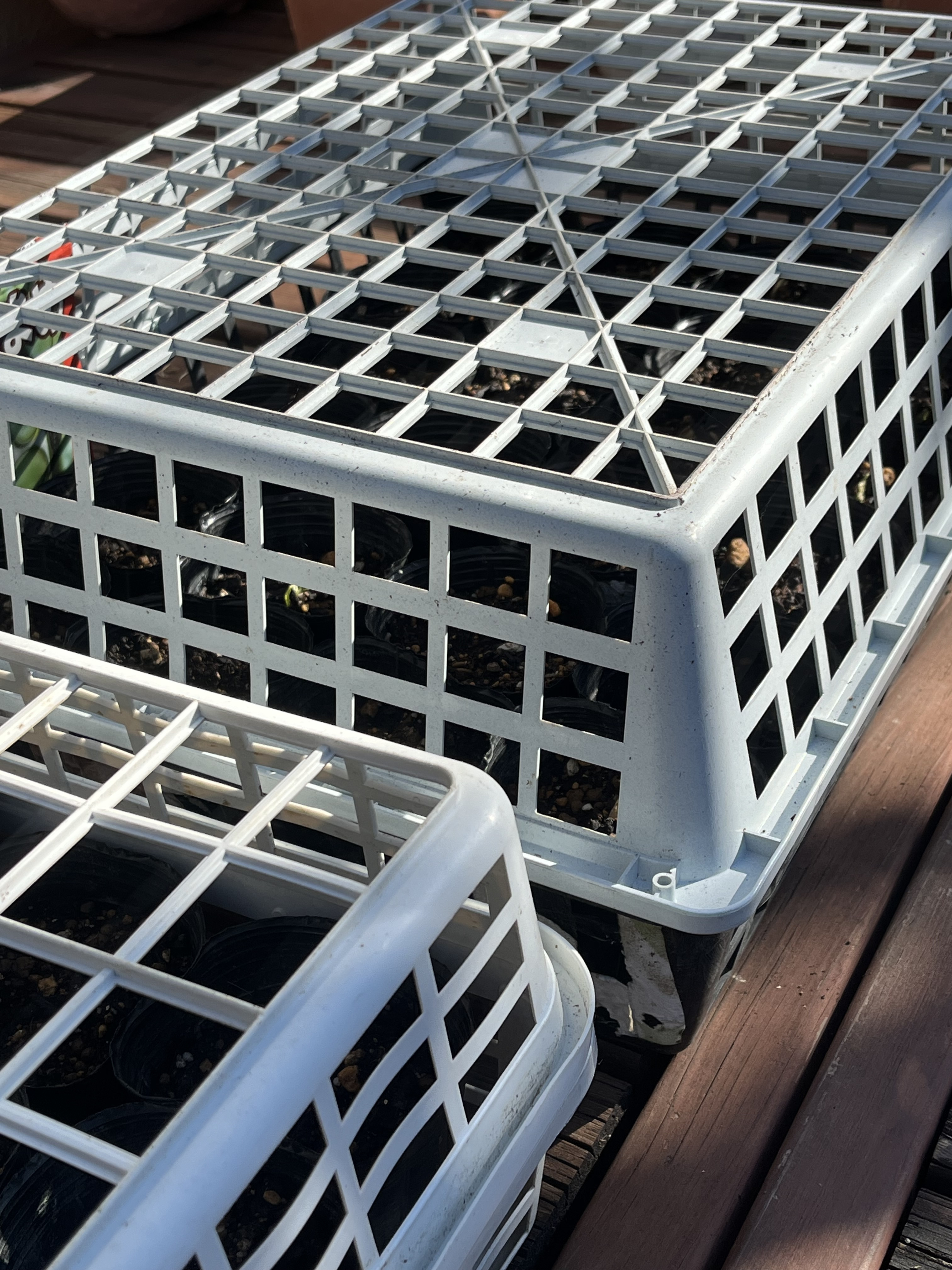 トップ > グリーン > 鳥よけ対策 toshi 2024/11/09 09:39 鳥よけ対策 すでにやっている方もいらっしゃるでしょうが。デッキで育てている「そら豆」の鳥よけ対策です。よく園芸屋さんでもらってくる籠を被せて針金でずれないようにしました。日当たりの良いとこへの移動も簡単です。この籠もらっておくと便利ですよ。重ねてしまえば収納スペースも取りません。 いいね 共有する 共有する X LINE リンクをコピー コメントする 1 件の返信 (新着順) ミュートしたユーザーの投稿です。 投稿を表示 まっさん 2024/11/09 14:34 Toshi 鳥よけ、しっかりしてていいアイデアですね。 私も先日、トレイを貰ってきて 黒ポットの苗用に使っています。 移動も楽ですね。園芸店の店先ほどのボリューム出ると嬉しいなあ💕💕よろしくです。 いいね 返信する ミュートしたユーザーの投稿です。 投稿を表示 toshi 2024/11/09 16:37 まっさん たまに籠ごと大人買いしたくなりませんか。 いいね 返信する ミュートしたユーザーの投稿です。 投稿を表示 まっさん 2024/11/10 11:47 toshi 広いお庭とか有れば、もう何度か買ってるかもです。ホムセンの花苗の売り場で「ここから、ここまで」なんちゃって😄✌️ 洋服の売り場では、冗談にも考えた事無いですが。 トレイの黒ポットでいっぱい開花したら、自前で籠いっぱい買ったと同じに見えるかな?取り敢えずドンドン花苗も育成中です。お隣のオジサンに「趣味ですよね?」と聞かれました。玄関先で種蒔きして植え替え💪🌱🌱🌱🌱🌱🌱🌱🌱🤗🤗🤗 いいね 返信する ミュートしたユーザーの投稿です。 投稿を表示 toshi 2024/11/10 12:06 まっさん いいですね。花は癒されますよね。 いいね 返信する ミュートしたユーザーの投稿です。 投稿を表示 まっさん 2024/11/10 15:04 toshi ちゃんと咲かせないとです。 今咲いてるのは、ピンク🩷の金魚草だけ。アジアンハイビスカスのピンク🩷の蕾もチラリ😆(春の花です)、寄せ植えバイキングのシクラメン、カルーラ等。苗だらけの玄関先です。🤣🤣🤣🤣 いいね 返信する ミュートしたユーザーの投稿です。 投稿を表示 toshi 2024/11/10 15:10 まっさん 綺麗な玄関なんですね。花は良いですよね。 いいね 返信する