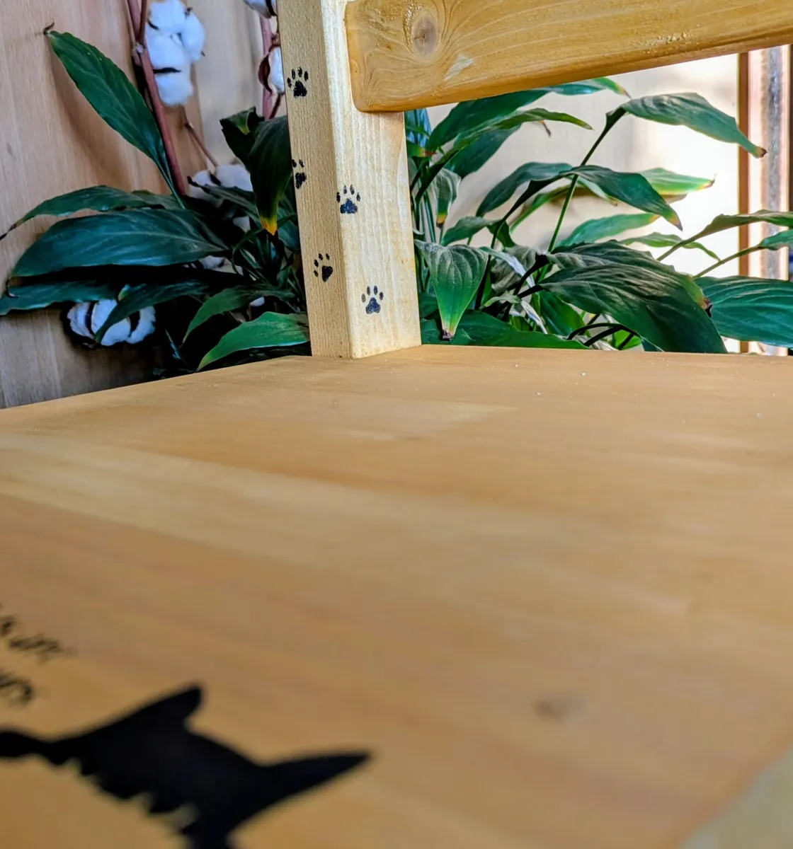 ・ネコちゃんが背もたれの柱を登っている感じでステンシルをして動きを付けています🐾