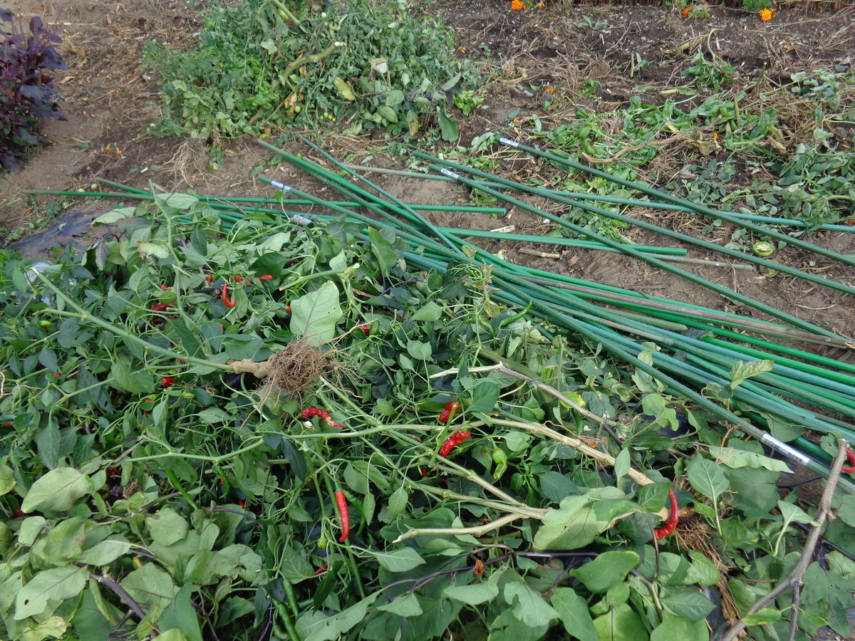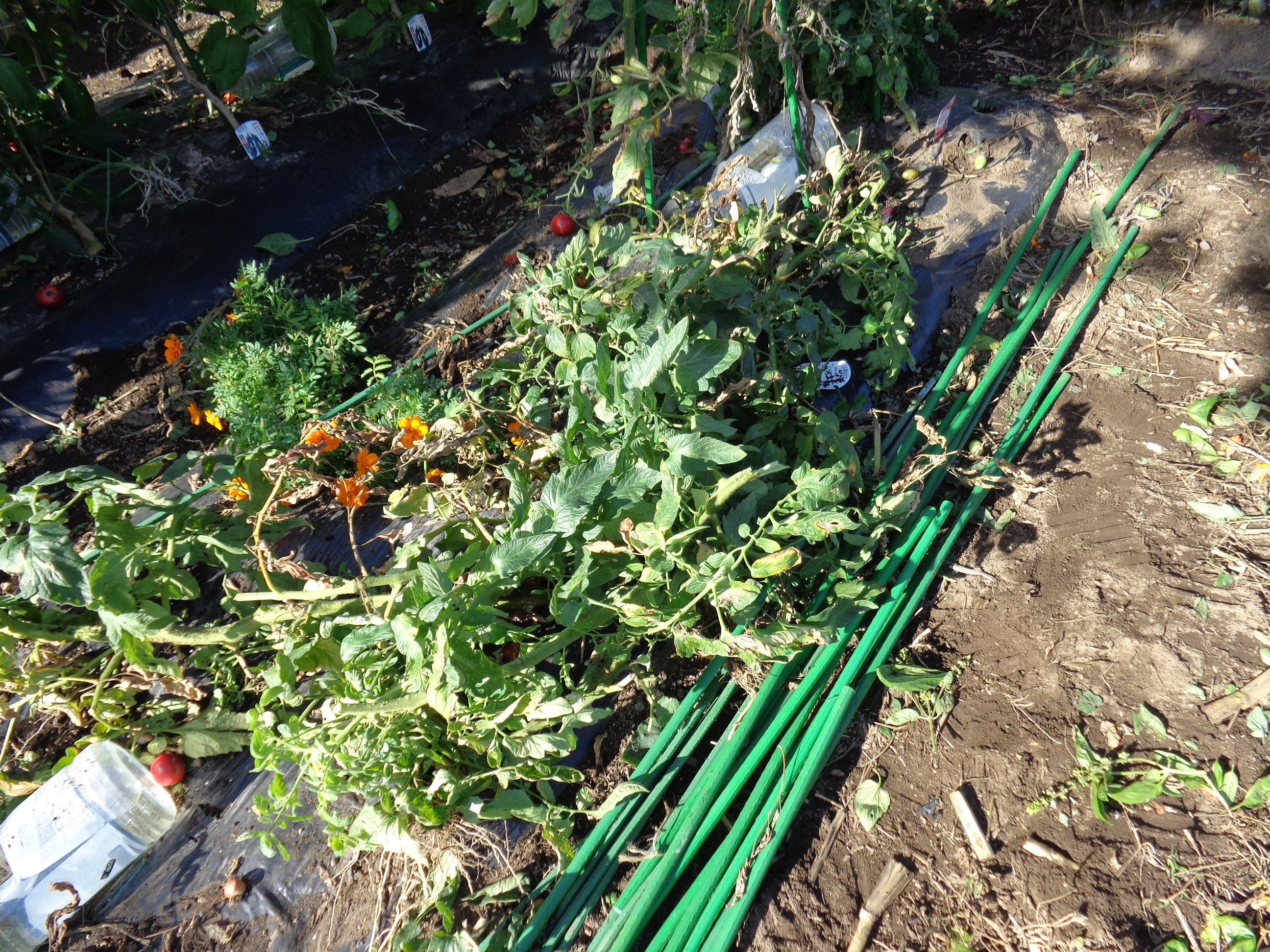 まだ、元気な野菜達に「今年は暑い中がんばってくれて、ありがとう、美味しい野菜をありがとう」と声をかけながら枝葉を落とし、支柱を外しながら片付けるのですが、でもダメですね。年取るとだんだん涙腺が甘くなってきて、いつの間にかあふれてくるものがあります。