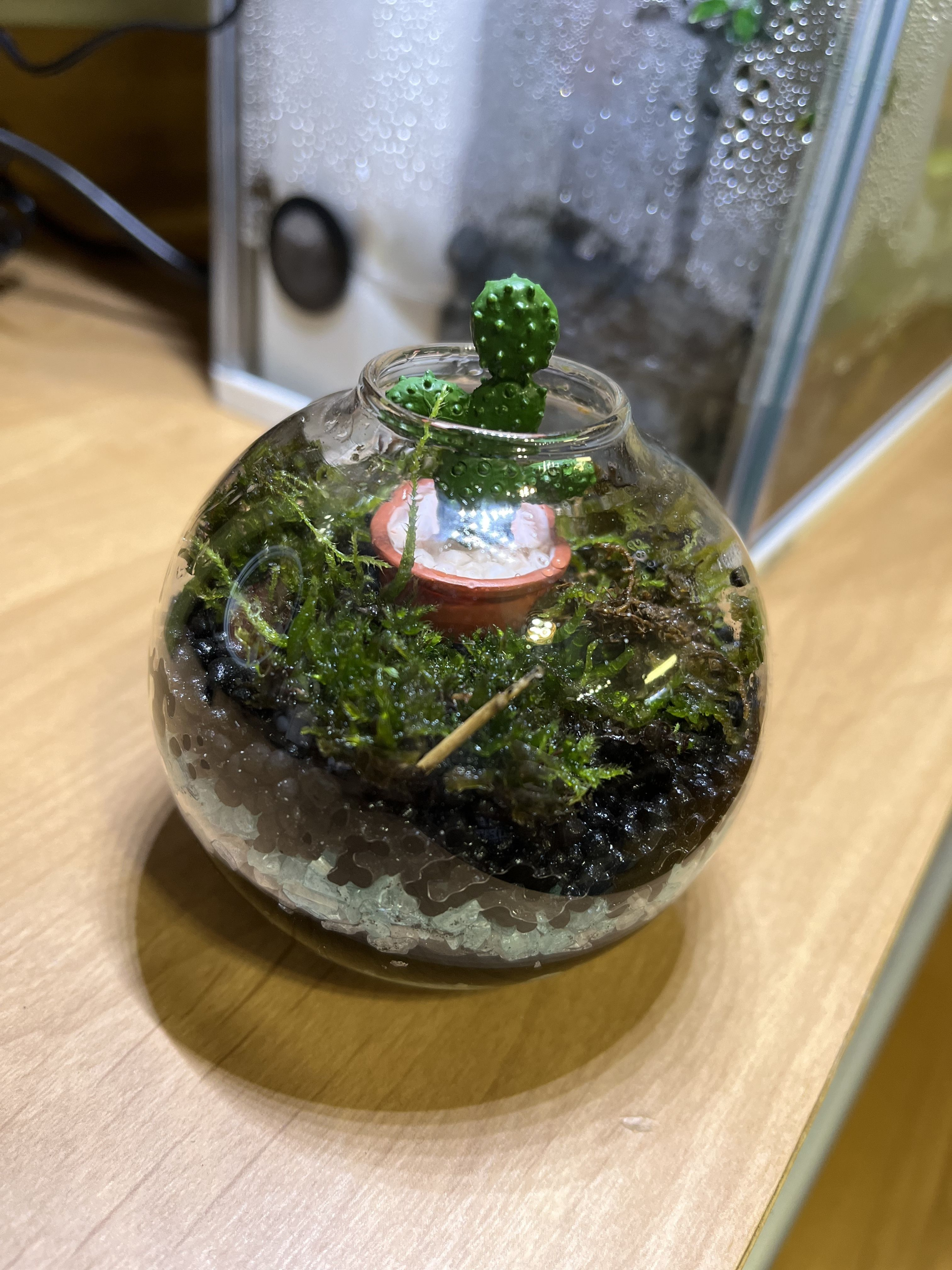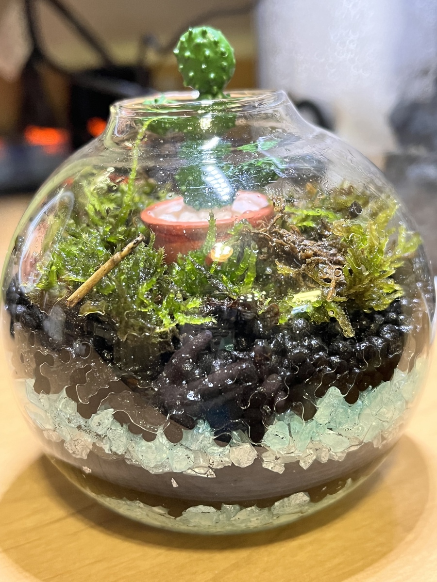 トップ > グリーン > 今日の苔テラリウム しょうしん 2022/03/29 22:58 今日の苔テラリウム 今日仕事帰りにDAISOに寄ったら素敵な入れ物が。 これは作らねばと思い、 コケテラリウムその2を作りました。 ガラスサンドのブルーも買い、シマシマな感じにしてみました。 苔だけでは寂しいかなと思い、 サボテンのフィギュアを投入。 不思議な仕上がりになりました。 いいね 共有する 共有する X LINE リンクをコピー コメントする 2 件の返信 (新着順) ミュートしたユーザーの投稿です。 投稿を表示 ちぇりすけ 2022/03/30 21:57 味のある形の入れ物ですね☺️苔が入ると、雰囲気が出て素敵です✨ 入れ物以外の材料もDAISOさんで購入ですか❓ いいね 返信する ミュートしたユーザーの投稿です。 投稿を表示 エンジェル くみ 2022/03/29 23:59 不思議な感じの仕上がりですね。でも、素敵。可愛い。 空想が広がりますね🤗 いいね 返信する ミュートしたユーザーの投稿です。 投稿を表示 しょうしん 2022/03/30 07:21 ありがとうございます。 不思議な感じとしか言い表せないですよねw いいね 返信する