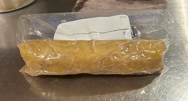 ⑤これをジプロックなどに入れ、棒状に形を整えて冷凍し、必要な時包丁で削って使います。