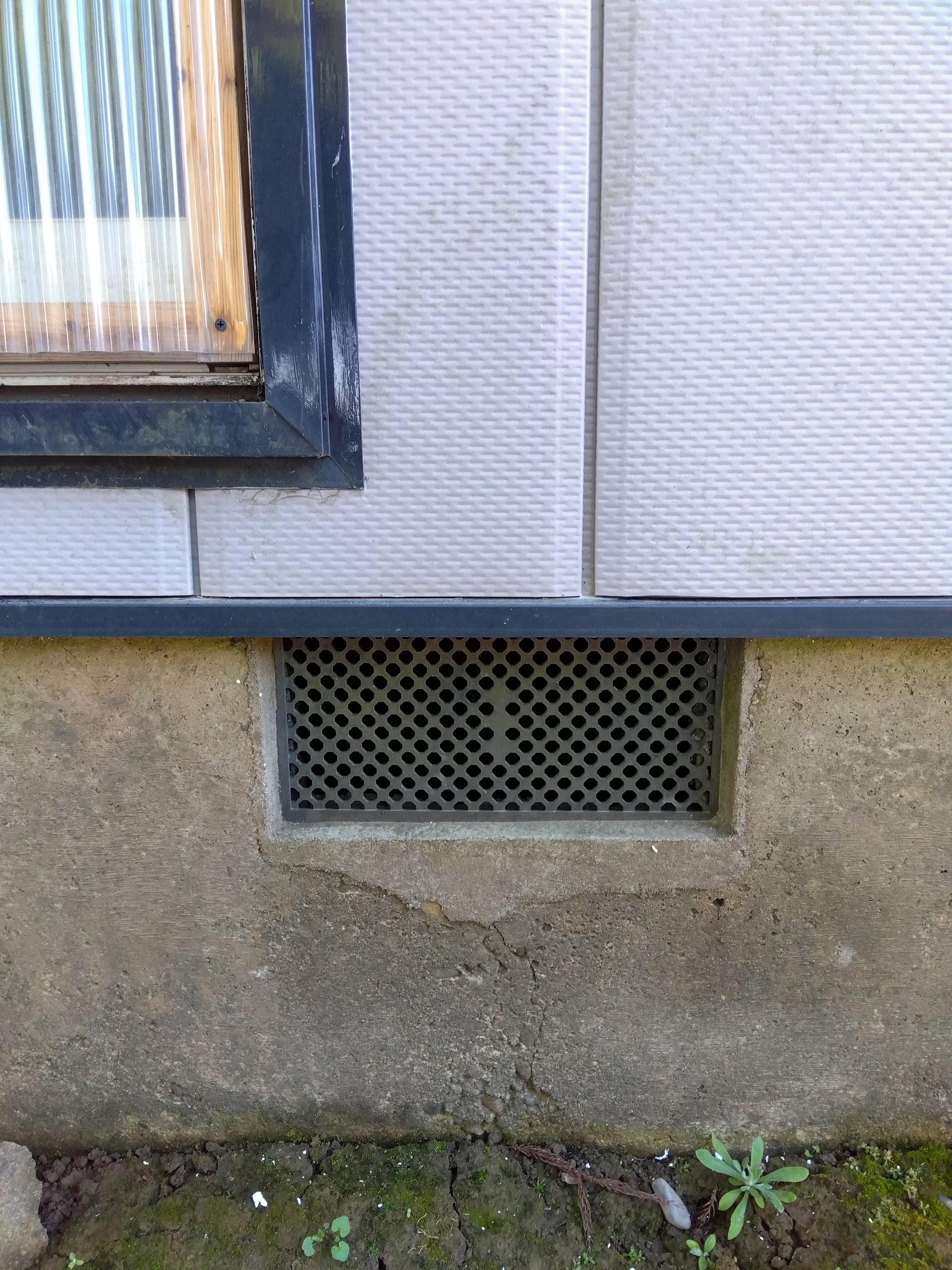 映えない画像ですが、基礎部分の通気口の写真です。雪国に住んで居ますと防寒除雪対策が冬の課題でありまして、寒くなる前に、雪が積もる前にやるべきことがイロイロありますので、季節的には秋なのですが、この時期冬支度が始まります😆
