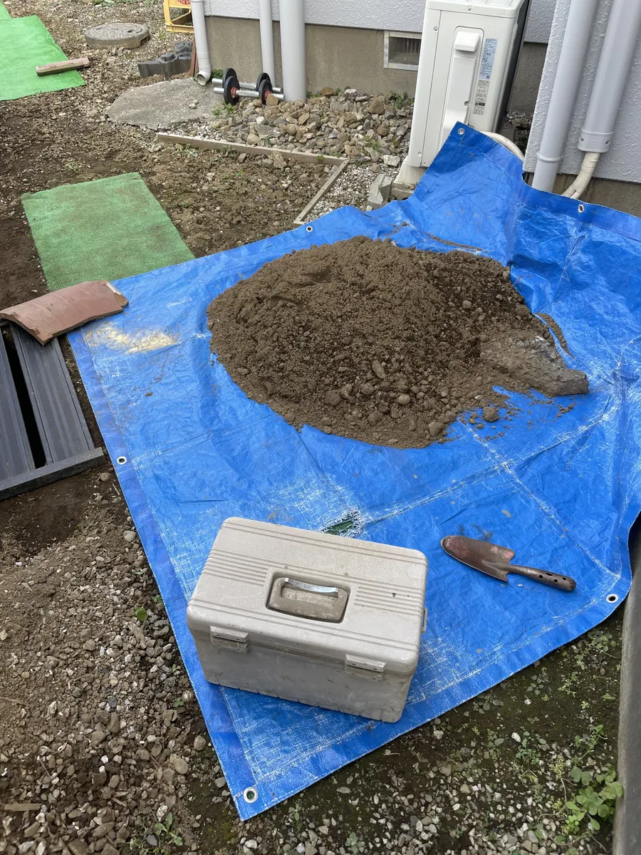 大晦日穴掘りして(リンク→ https://diy-square.cainz.com/announcements/euqaoakh4p1pqcom )、掘り上げた砂利混じりの土壌のフルイ掛けをやっつけました。