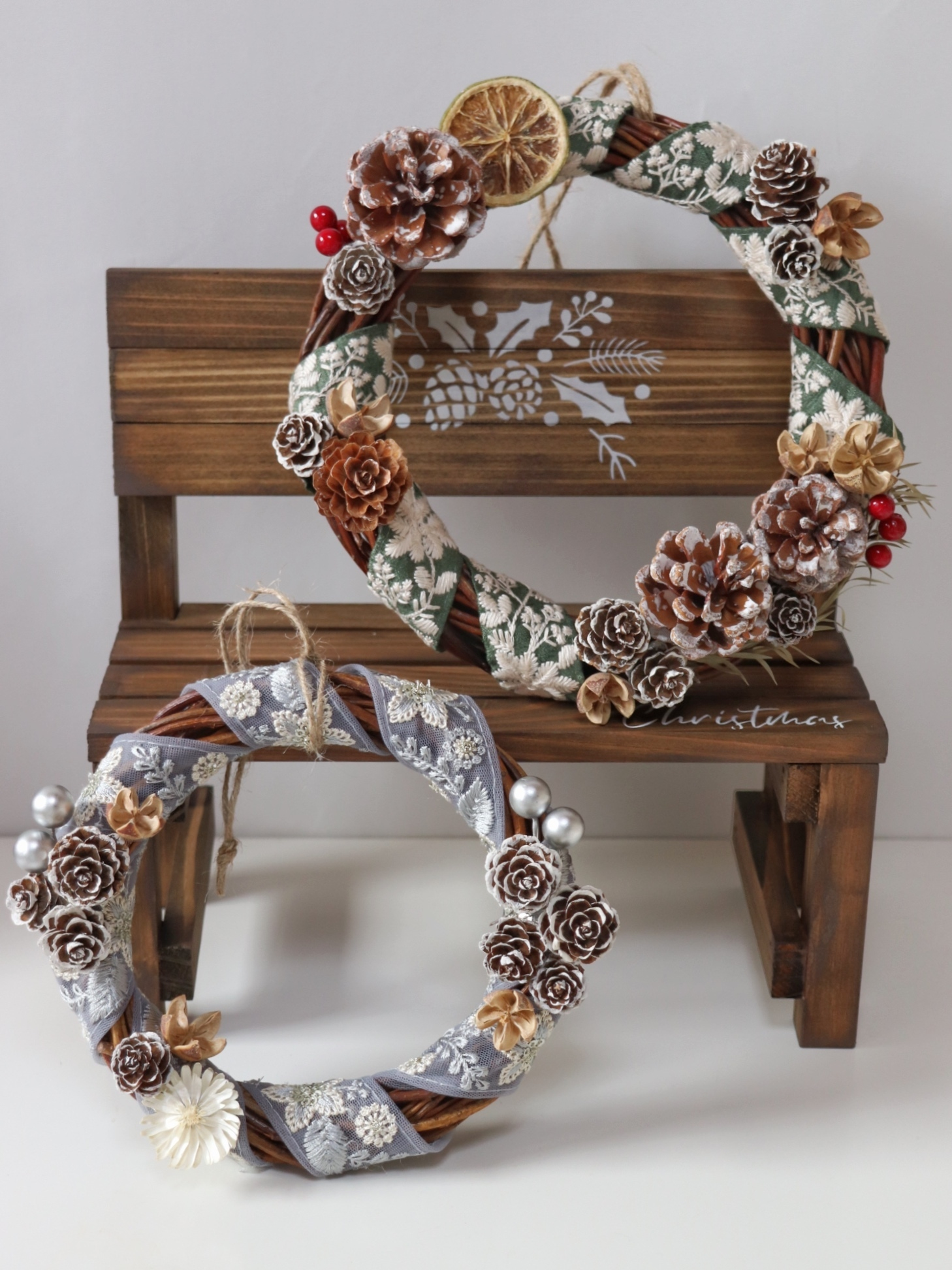 リボンで華やかさもありつつ、木の実やドライフラワーでナチュラルぽくっていいですね❣️