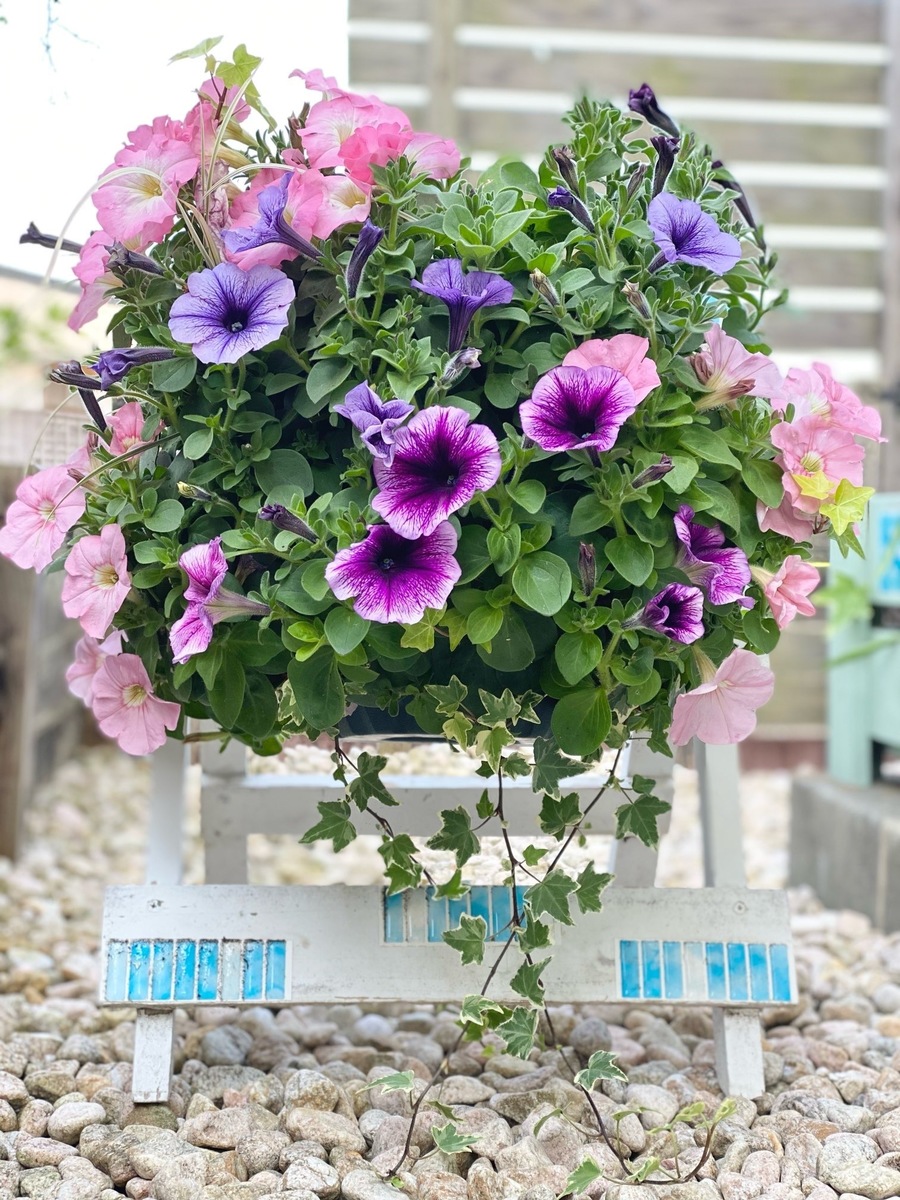 投稿を表示ハンキングバスケットのお花の色合いが素敵✨✨