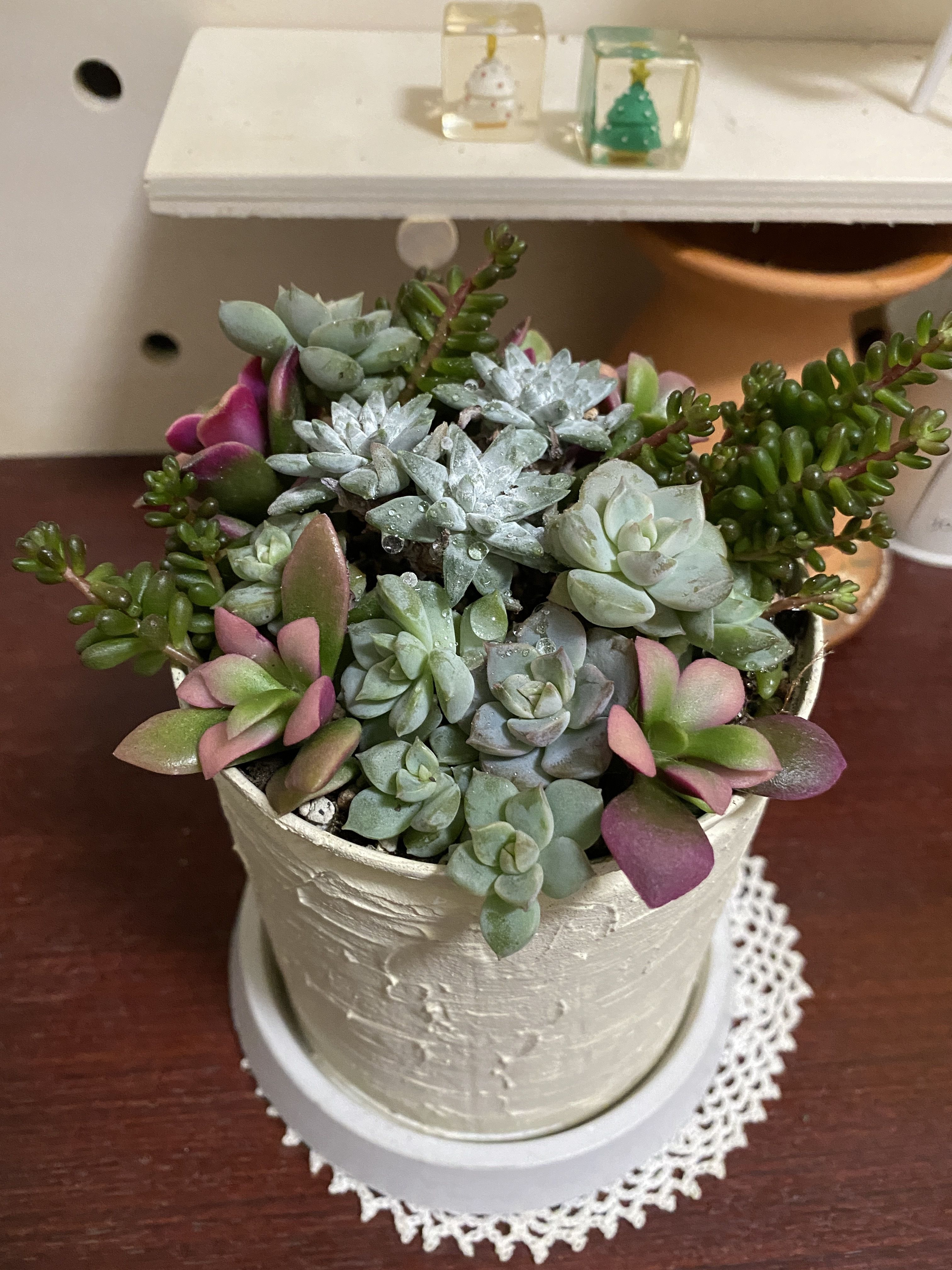 真ん中の多肉ちゃんは、雪が降ったような多肉ちゃんで、桜吹雪だけわかります😆