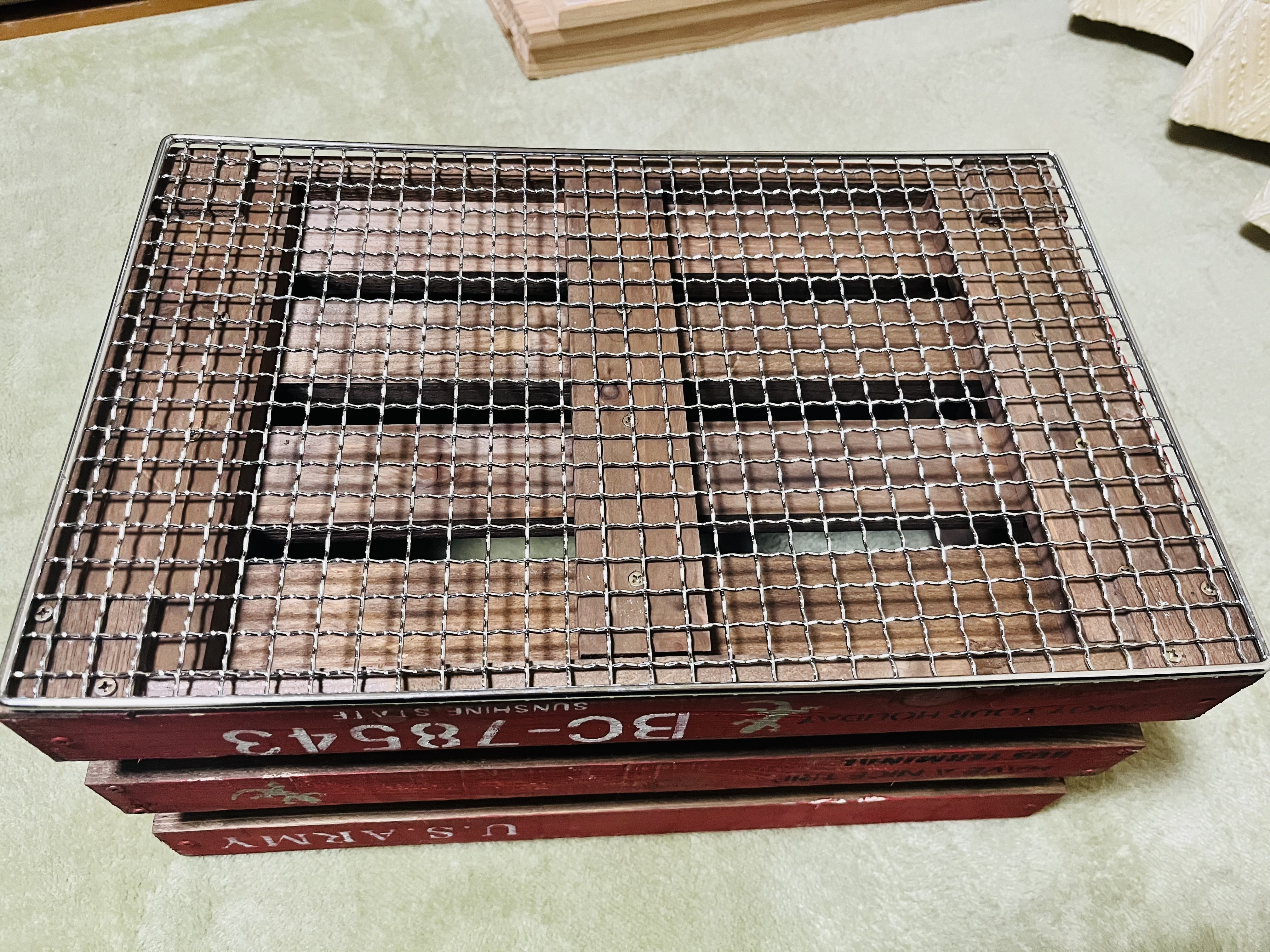 今日の強風で庭の惨事がないか懐中電灯🔦照らし庭に行ったらBBQコンロでサボテンガーデンを作ろう🌵と、やってた時に出た要らない網……発見!