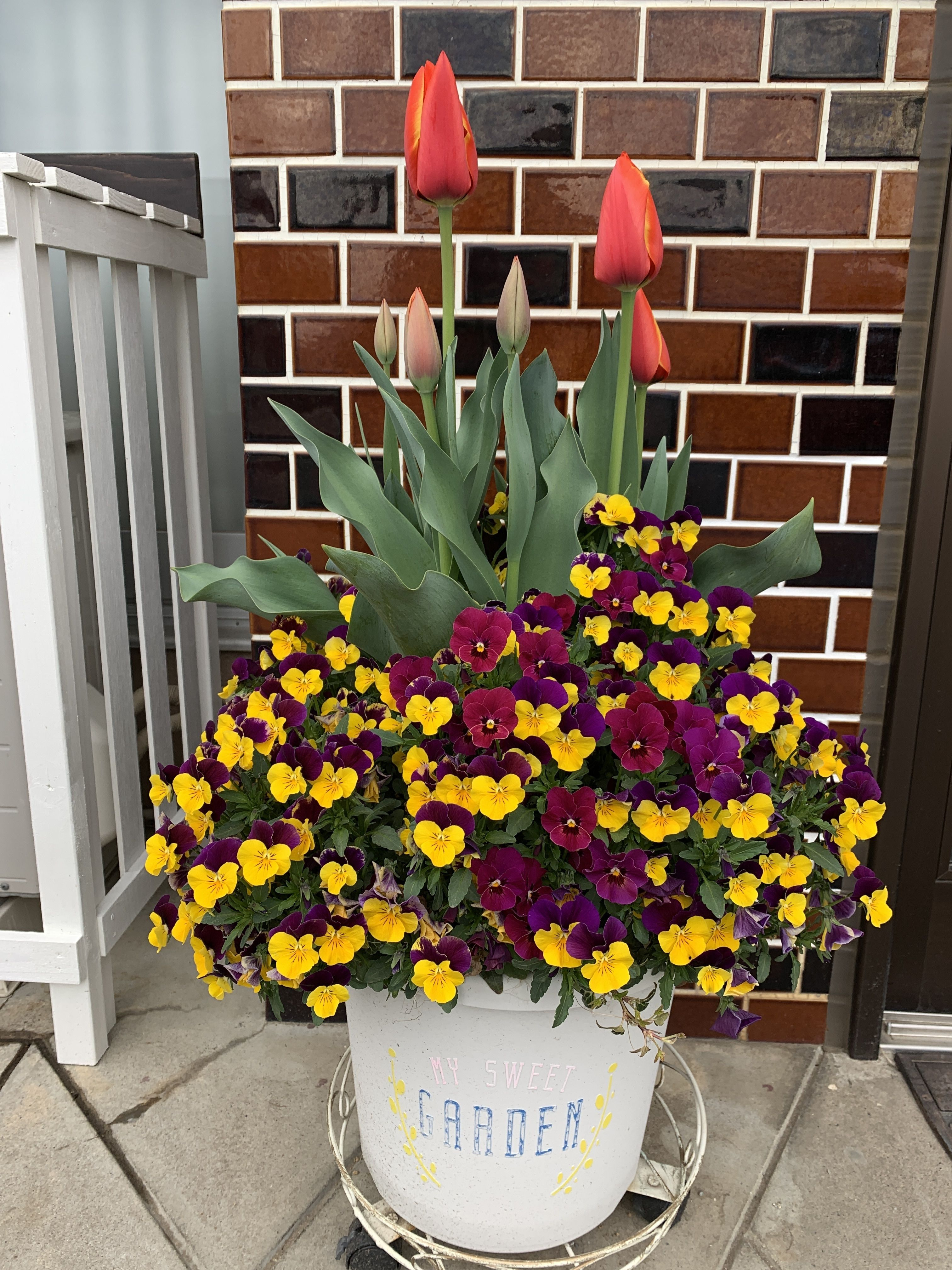 投稿を表示ビオラとチューリップ🌷とっても華やかな寄せ植えですね💕。我が家ではやっとチューリップの蕾が膨らみ始めました。私達が大好きな花・花・はな・の季節到来、ガーデニング楽しみましょうね💜💙💚💕。
