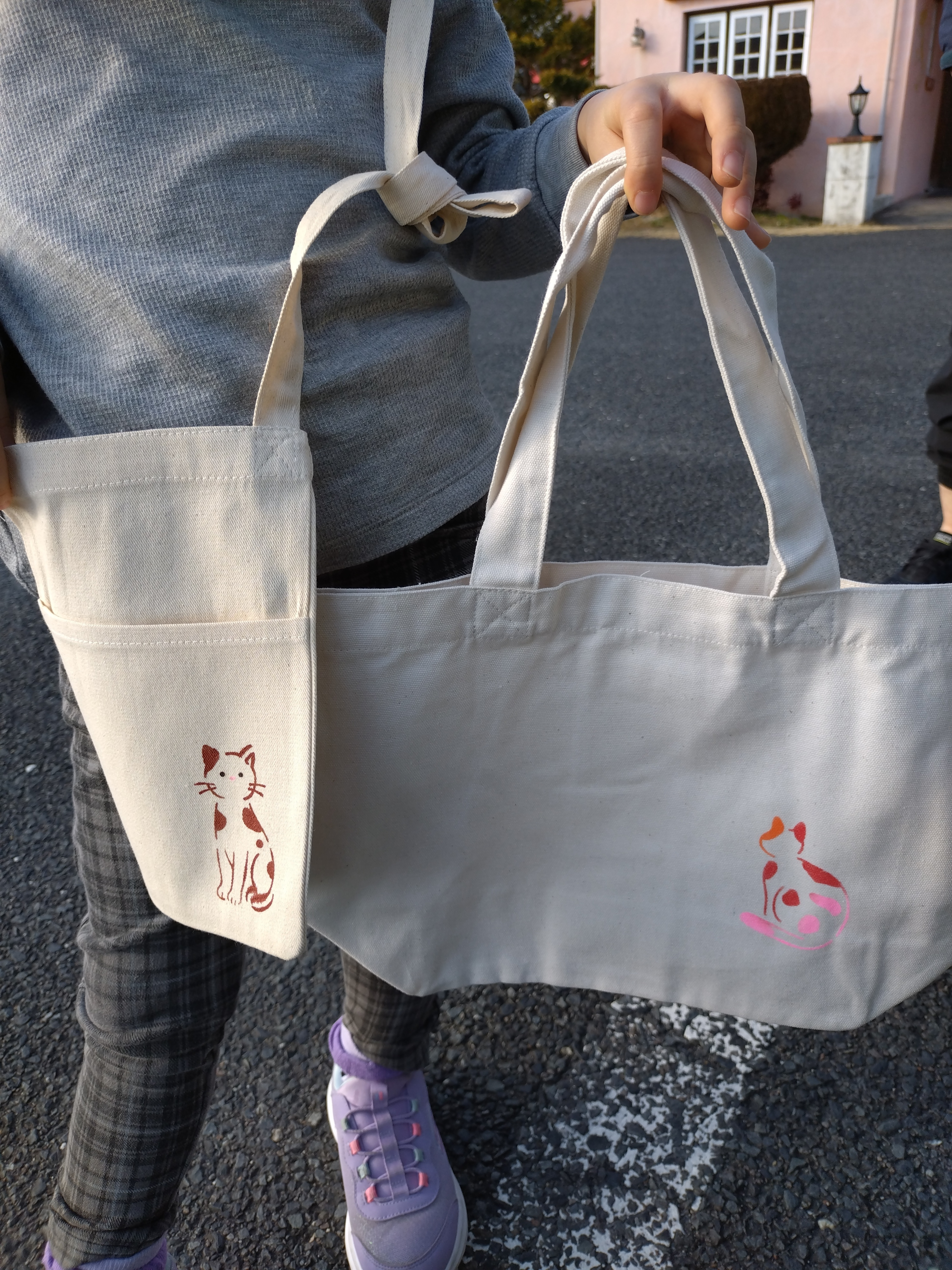 トップ > ワークショップ > 小物・雑貨 > オリジナルお散歩バッグ カインズ にゃん祭りver. ゆいあや 2026/02/15 17:25 オリジナルお散歩バッグ カインズ にゃん祭りver. ねこちゃんのステンシル、全部使いたいくらいどれも可愛いかったです!通常のステンシルでも使いたいな〜😻 娘が使うサコッシュ?は、私と娘でステンシルし、私が使うトートは、買い物している間に夫がステンシルしました! 夫にはたくさーん欲しい、えんぴつ型小物入れ、ベジタブルボックスを一緒に作っていただきたいので、それまで「付いてきて〜」は厳禁だと自分に言い聞かせています🤐 リフレクターも作りたかったのですが、都合が合わず泣く泣く断念しただけに、バッグだけでも作れて良かったです🥳 いいね 共有する 共有する X LINE リンクをコピー コメントする 1 件の返信 (新着順) ミュートしたユーザーの投稿です。 投稿を表示 さくらひまわり 2026/02/15 17:30 素敵な家族作品ですねー😍😍 いいね 返信する ミュートしたユーザーの投稿です。 投稿を表示 ゆいあや 2026/02/15 19:04 さくらひまわり コメントありがとうございます😊 私が買い物を終え戻ると、娘は木材と違って布は入りにくく、疲れ切っていてチェンジしました😄 お会計して夫には、ステンシル選びから全てを託してドロン!なので、自分ではあまり使わない赤❤️やピンク🩷の出来に一瞬言葉を失いましたが、もちろん何も言えません🤣 とはいえ、いい感じな仕上がりだと思いました🤩 いいね 返信する ミュートしたユーザーの投稿です。 投稿を表示 はっちゃん 2026/02/17 21:18 さくらひまわり 可愛い🐈 いいね 返信する