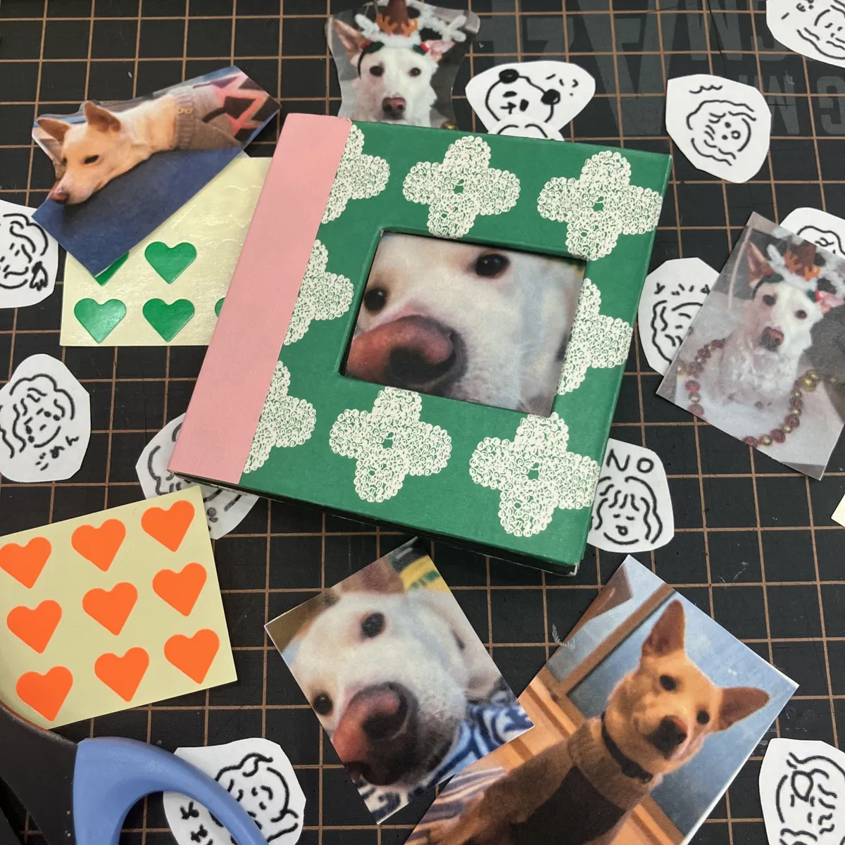 step3:厚紙にカラフルなデザインペーパーを貼り、表紙を作る