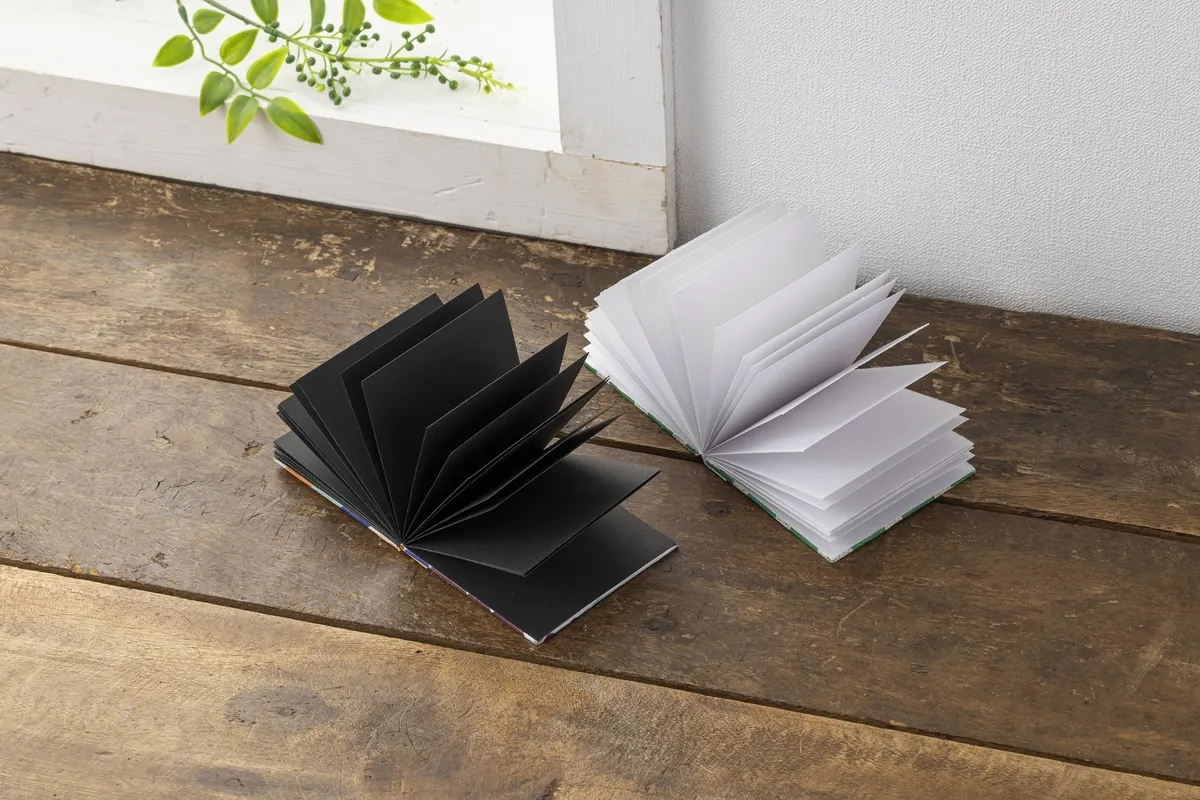 白い用紙は、書き込みやすいのでミニノートとして日記を書いたり、カラフルな色が映えるので、スタンプ帳として旅のお供に、黒い用紙は、写真が映えるのでペットや家族の写真を貼ってアルバムとして使うのもおすすめです★