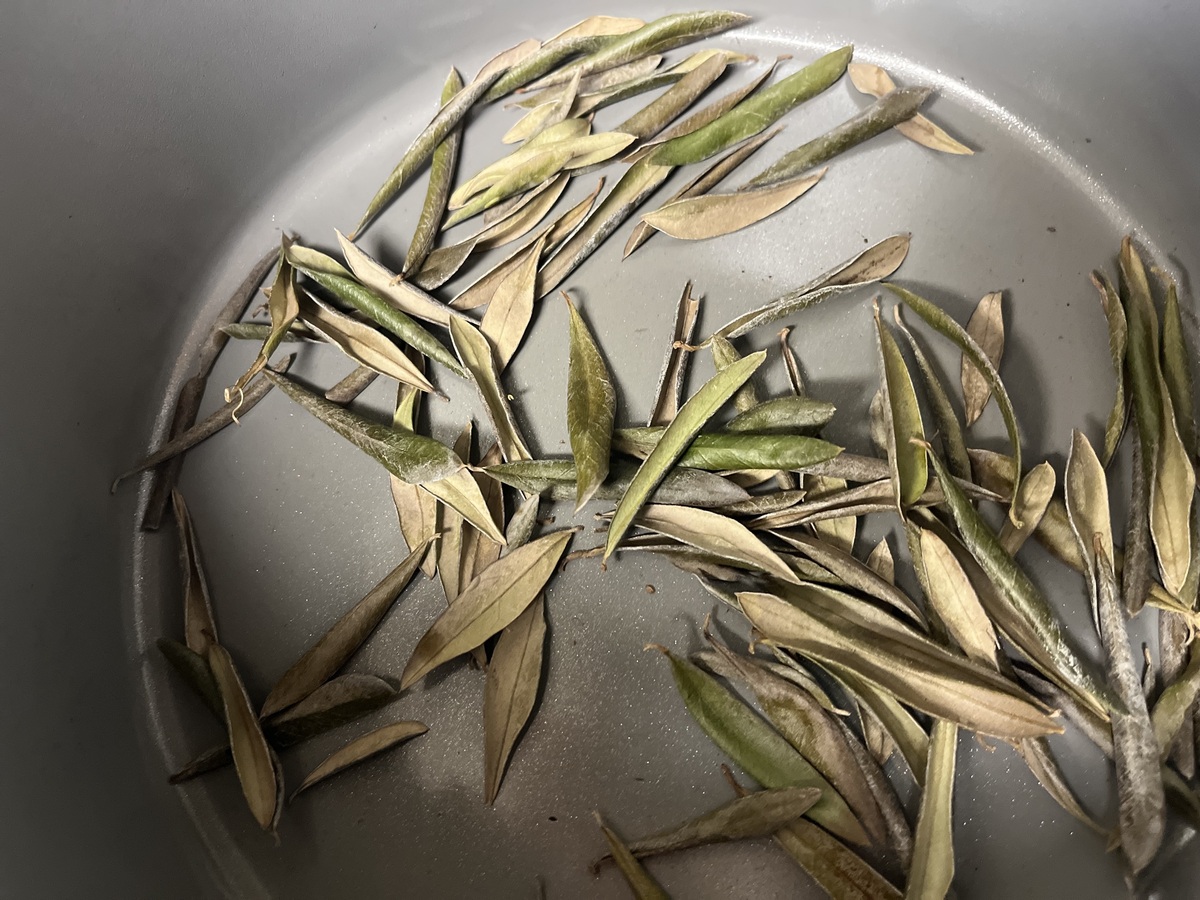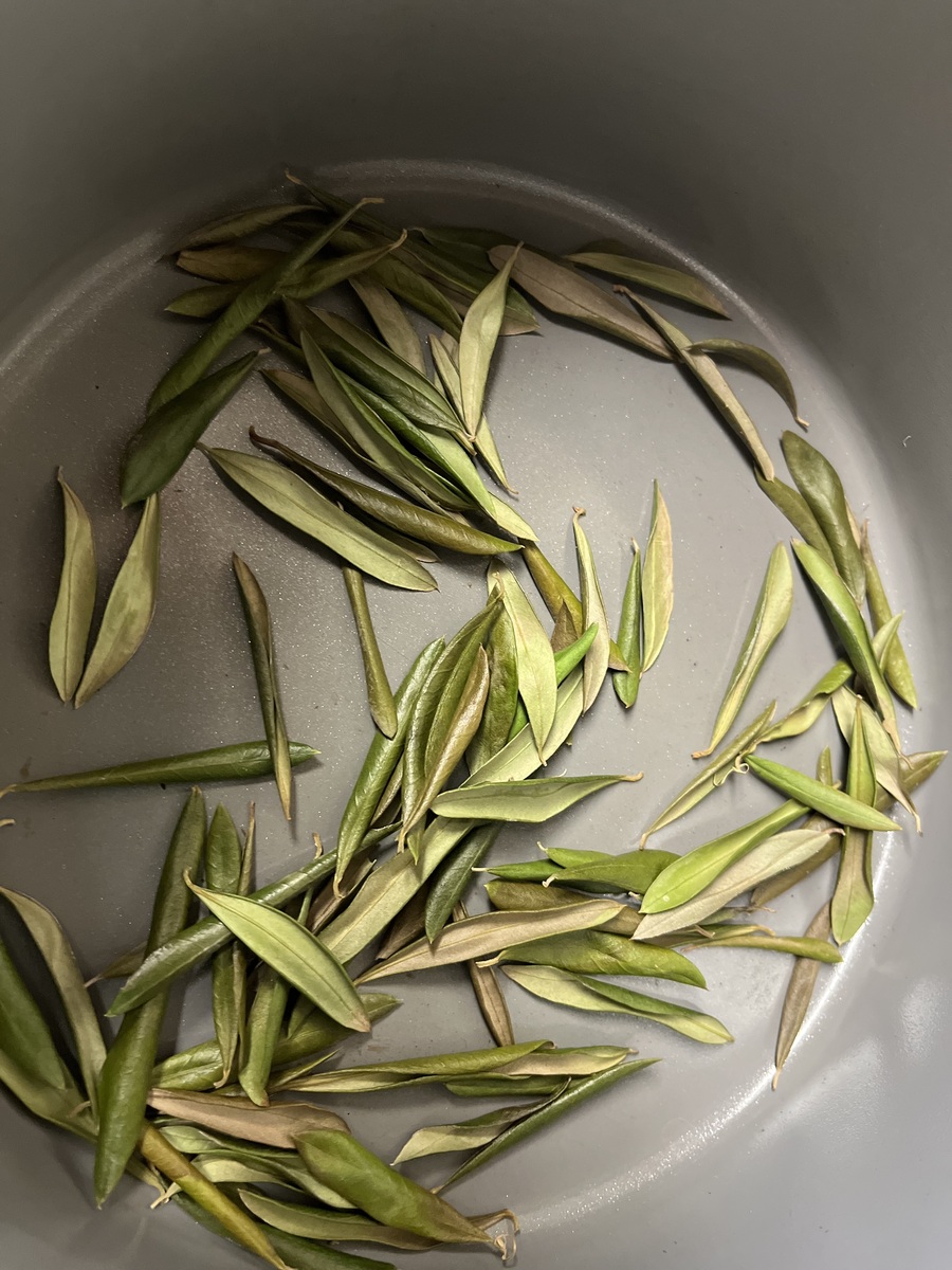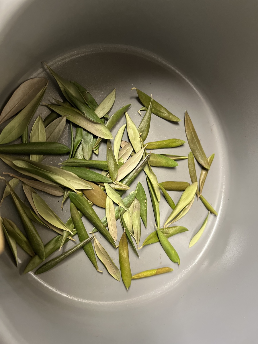 先日剪定したオリーブ🫒の葉でお茶を淹れてみたところ、全く色も出ないし白湯だしと散々な出来だったのですが、
