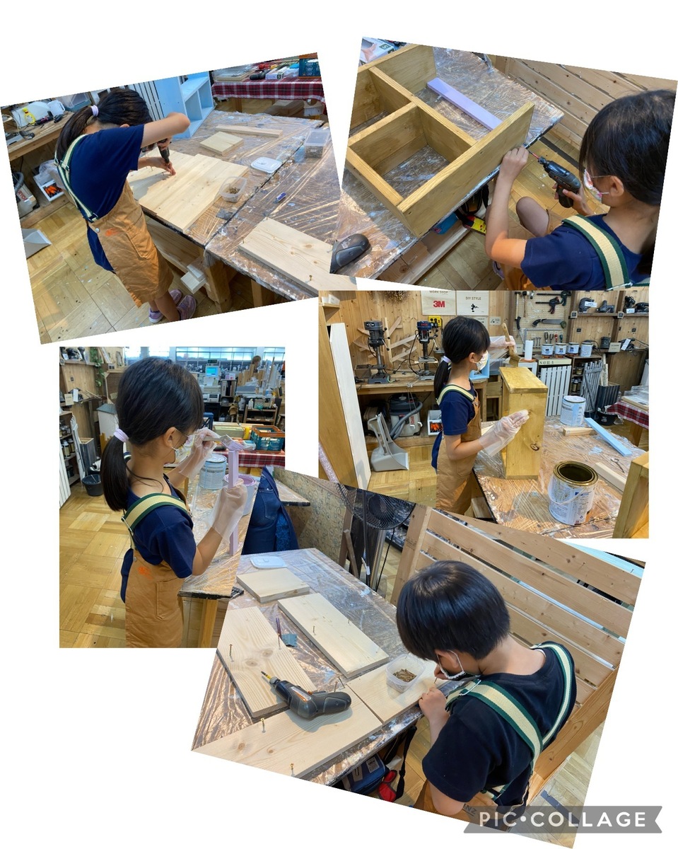 夏の工作でジュエリーボックスを作って楽しかったみたいだったので、子供たちの机の上がごちゃごちゃしてたので通常WSは初めてですが子供たちと「2段ディスプレイシェルフ」を作ってきました😃