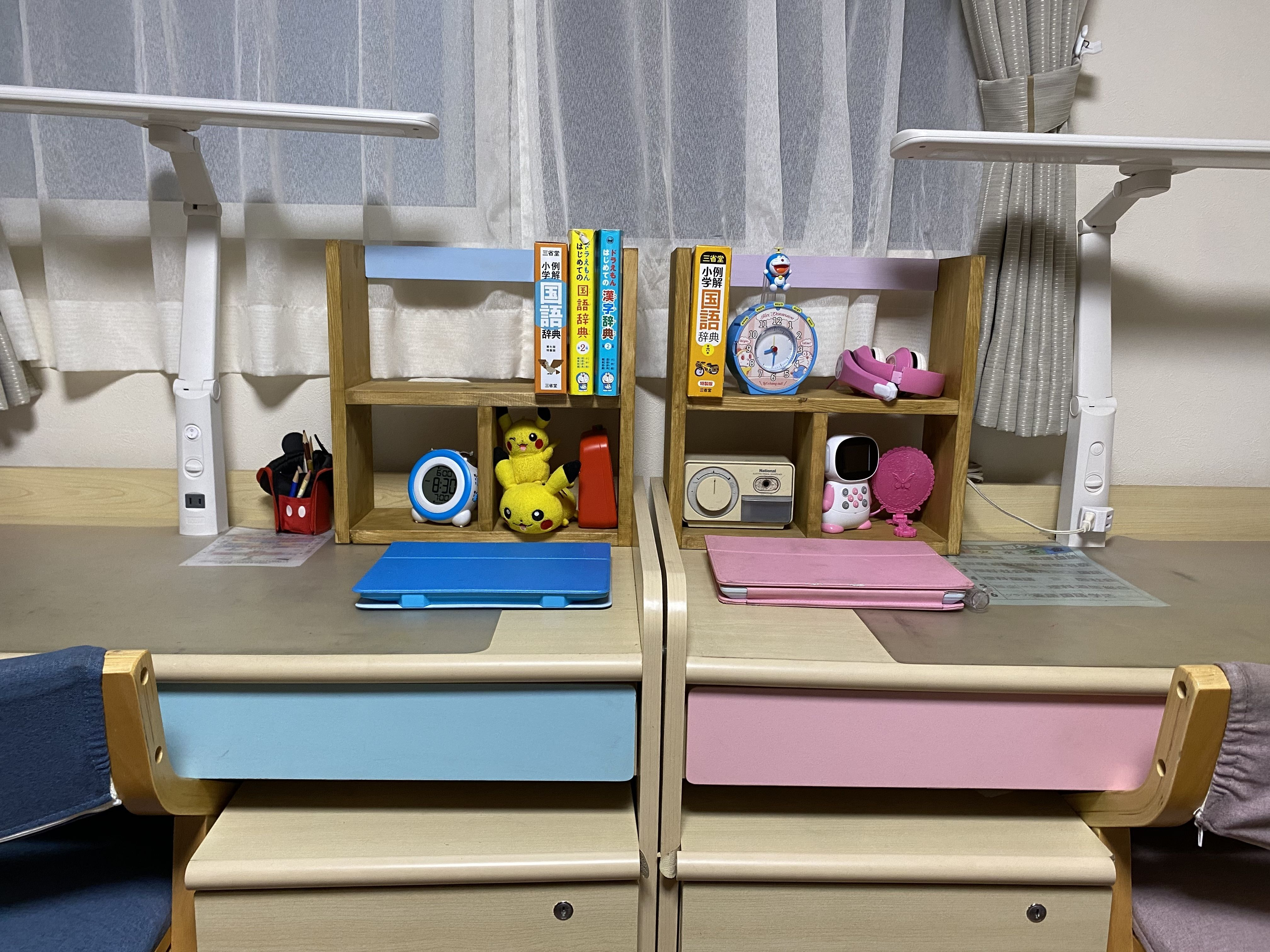 カラーは、机の色に合わせて差し色にピンクと水色、ベースにオーク(持ち込み)を塗りました。