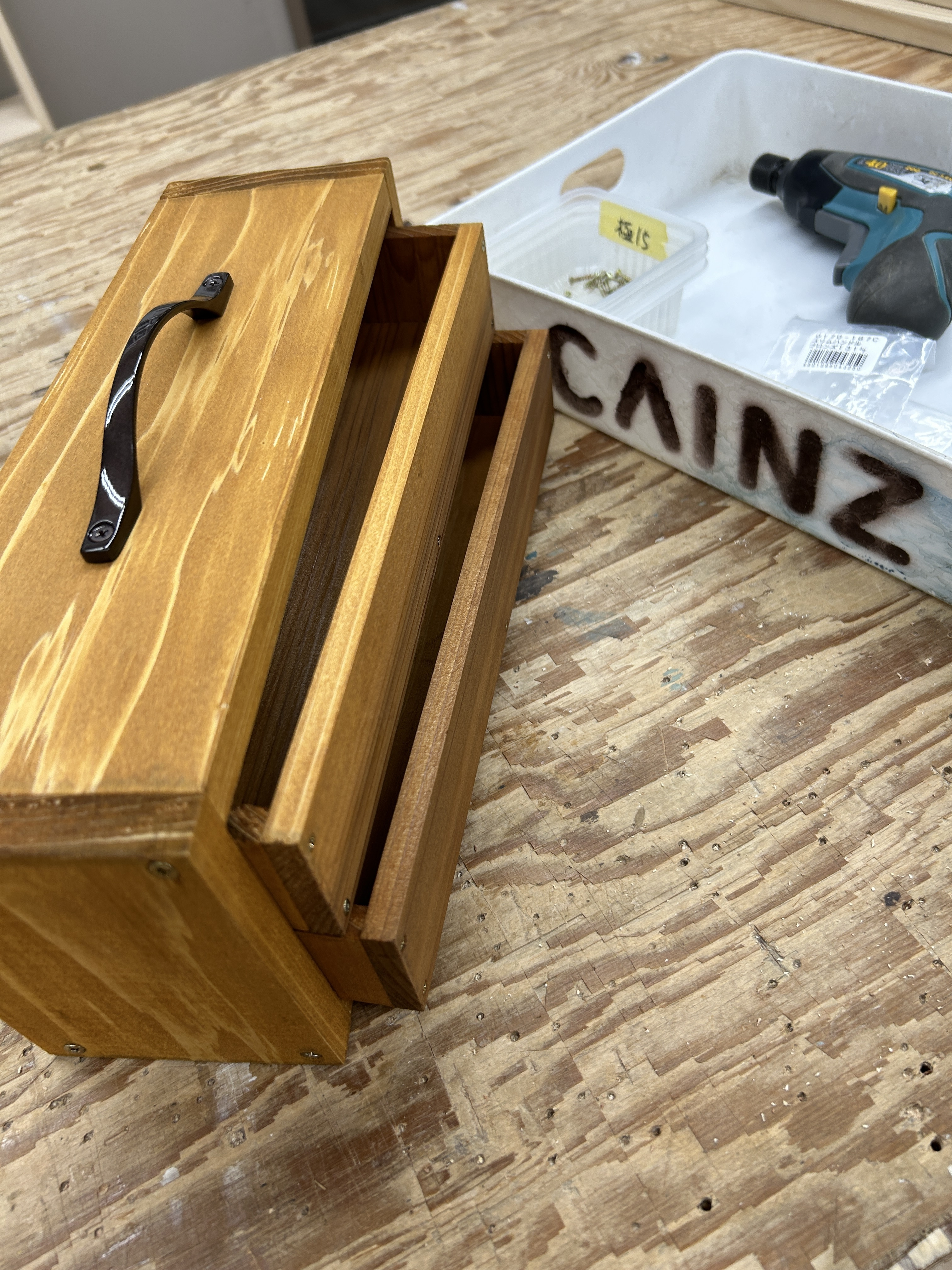 トップ > ワークショップ > 初ワークショップ とまとま 2024/08/13 00:01 初ワークショップ 初めてワークショップに参加して、持ち運び便利なカトラリーケースを作ってきました。 機械を扱うのは初めてで垂直の感覚が掴めず手間取ったため、やすりがけに時間が取れず残念。もっと紙やすりでツルツルににしたかった!角も全部削りたかった。 いいね 共有する 共有する X LINE リンクをコピー コメントする 3 件の返信 (新着順) ミュートしたユーザーの投稿です。 投稿を表示 ぱんだ 2024/08/14 07:26 初めてのWSでこの作品凄いじゃないですかー。内容も、てんこ盛りの気がします👍 木目の見える塗料でキレイですね😍 いいね 返信する ミュートしたユーザーの投稿です。 投稿を表示 とまとま 2024/08/14 16:02 ぱんだ ありがとうございます。頑張りました。垂直が自分の感覚と実際の垂直が違って、講師の方に何度も直されてしまいました。 メープルの薄い色だったので、木目がはっきりしていて気に入りました。 次回のチャレンジで、またがんばります。 いいね 返信する ミュートしたユーザーの投稿です。 投稿を表示 ハリー 2024/08/13 09:21 初WSお疲れ様〜やすりがけで、仕上がり具合違いますから大事ですよね。 いいね 返信する ミュートしたユーザーの投稿です。 投稿を表示 とまとま 2024/08/14 15:59 ハリー そうですよね。ヤスリがけで手触りが全然違ってくるので、次は頑張りたいです。 いいね 返信する ミュートしたユーザーの投稿です。 投稿を表示 asa 2024/08/13 09:08 初WSお疲れ様でした♪ いいね 返信する ミュートしたユーザーの投稿です。 投稿を表示 とまとま 2024/08/14 15:58 asa ありがとうございます。頑張りました! いいね 返信する
