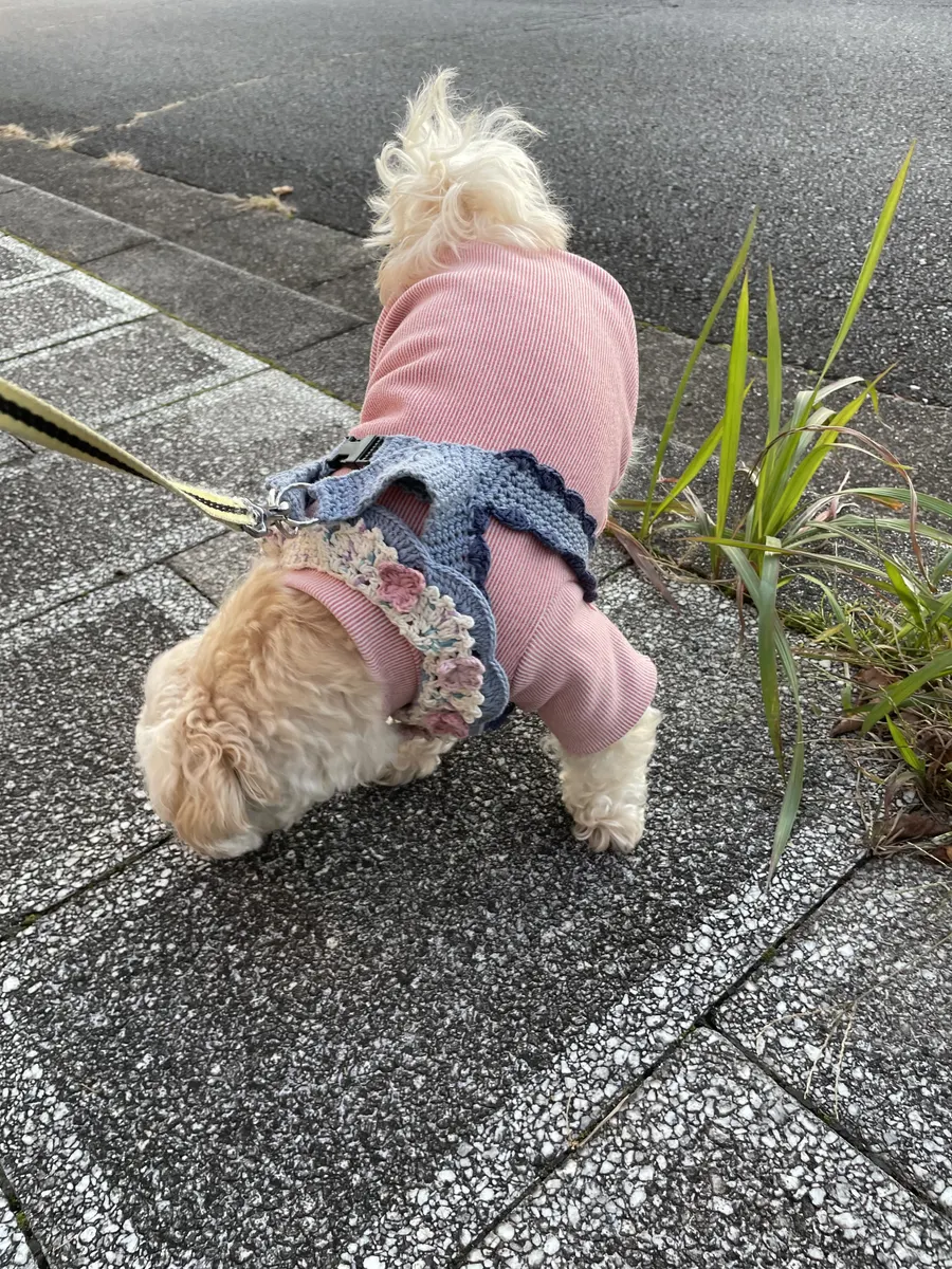 愛犬の体系と飼い主の好みに合った手作りハーネス