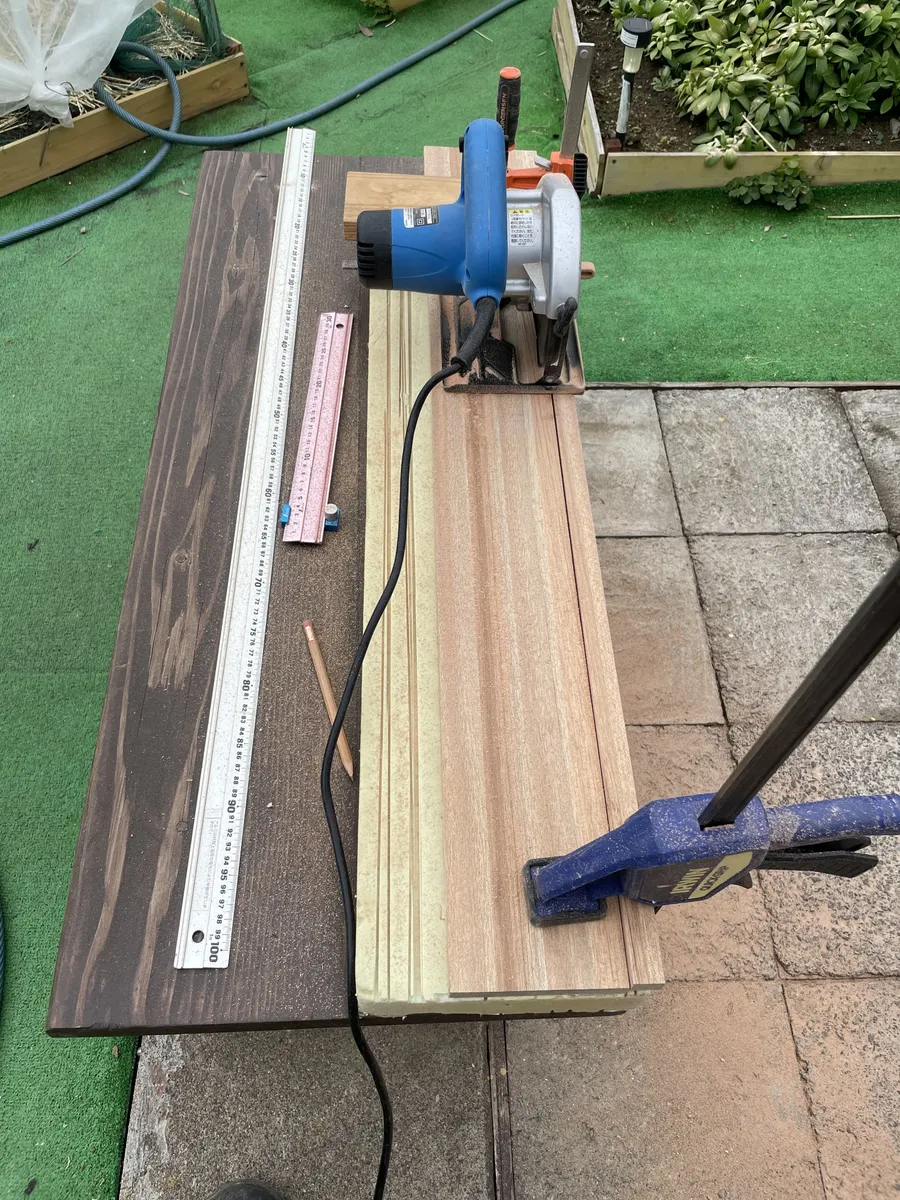 ↓丸ノコに平行ガイドを装着して幅20㍉に切り出します。