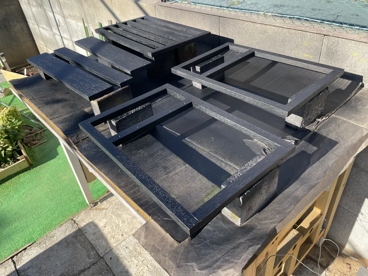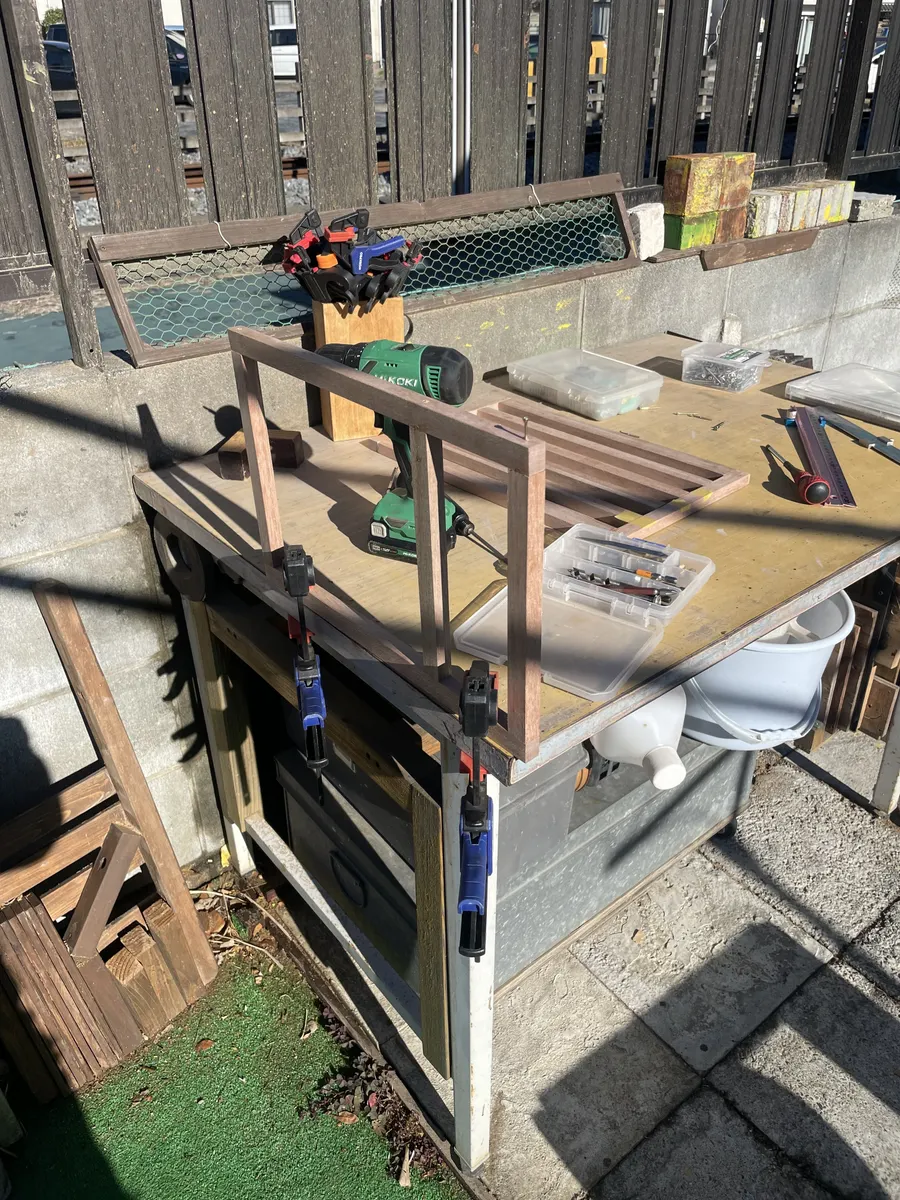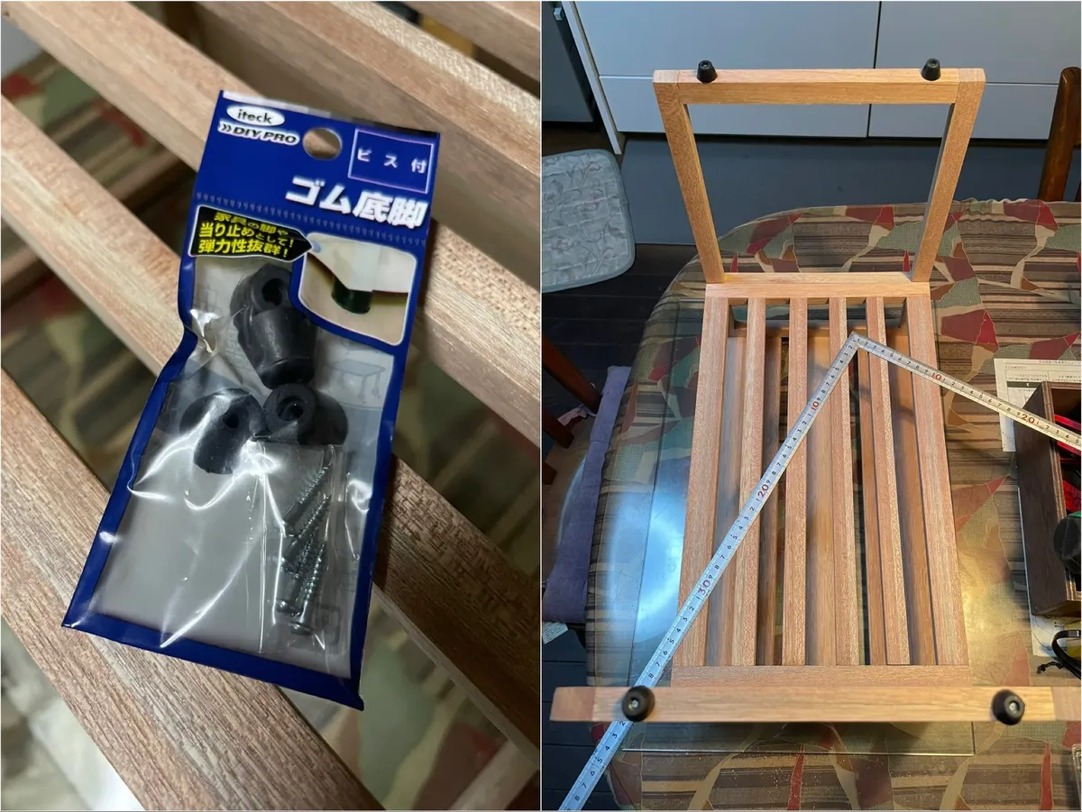↓乾燥後、再度ビス留めで木枠を組んで、ゴム底脚をビス留めして完成となりました。