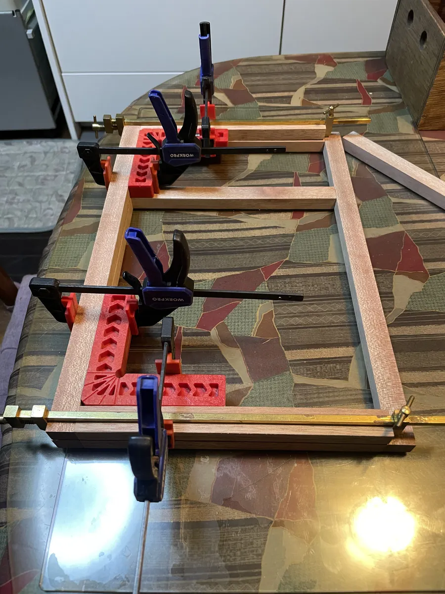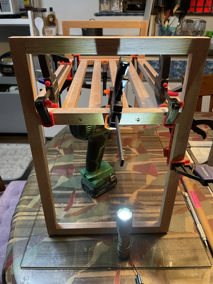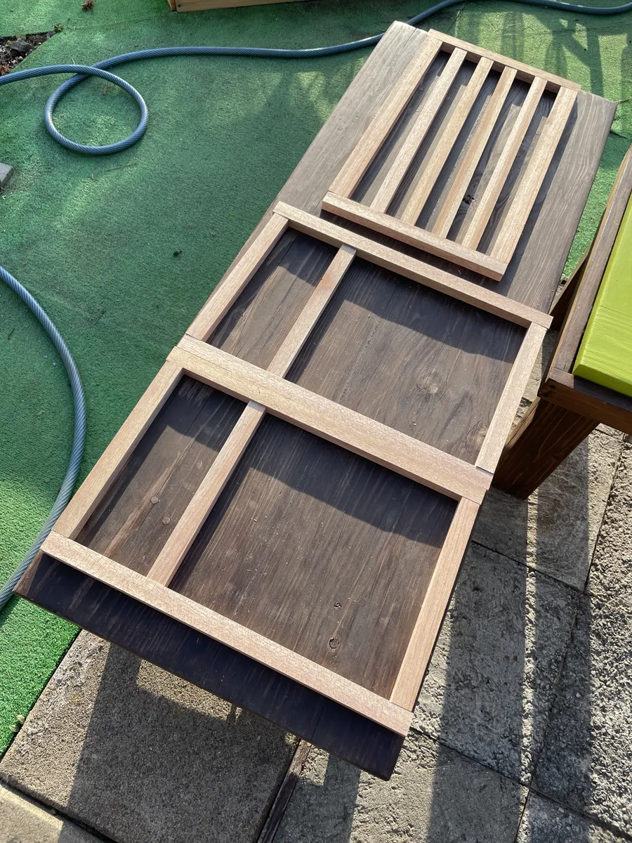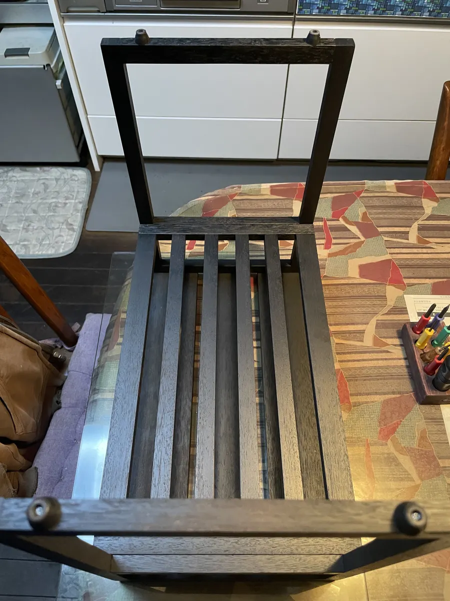↓乾燥後、再度ビス留めで木枠を組んで、ゴム底脚をビス留めして完成となりました。