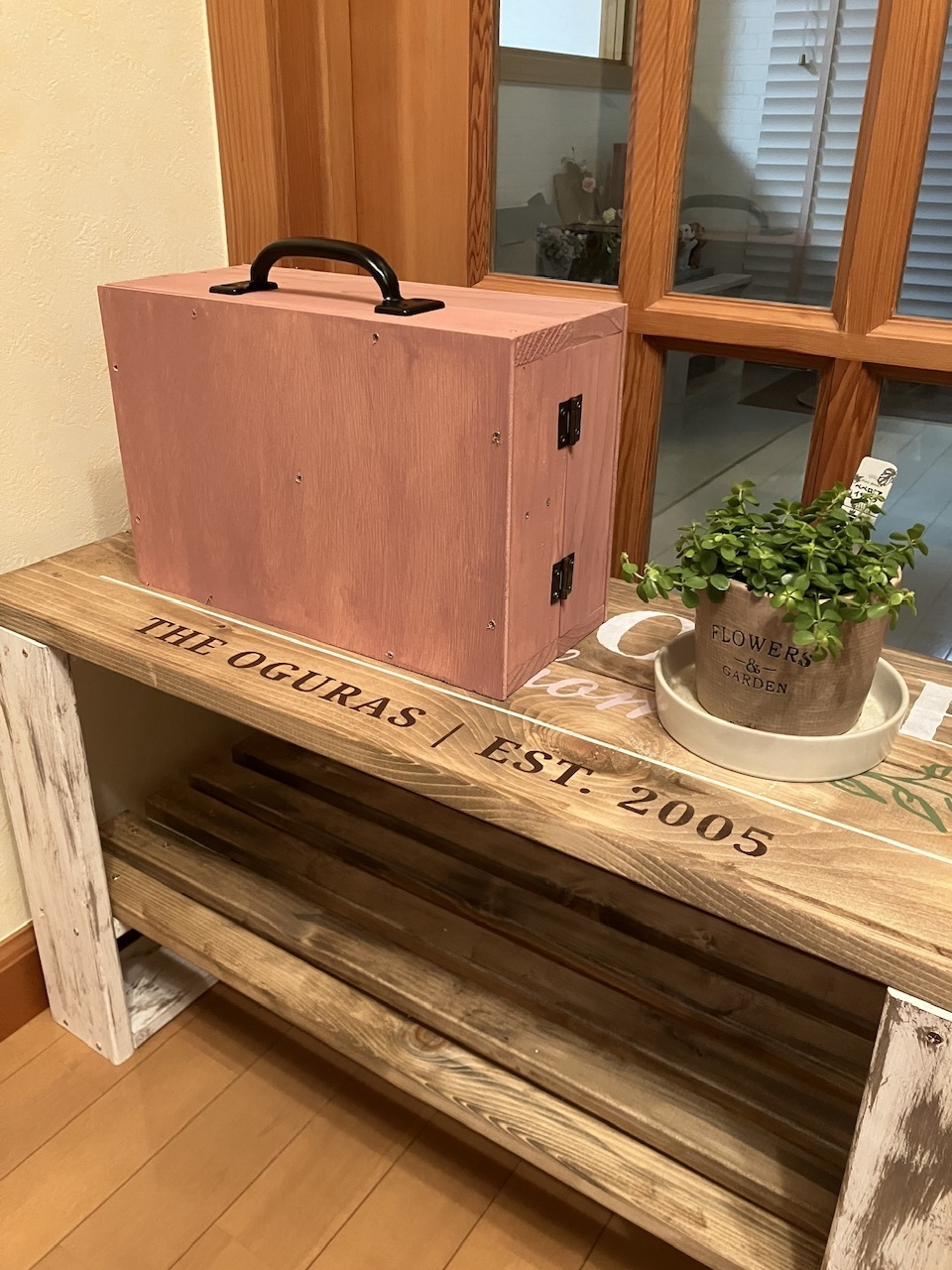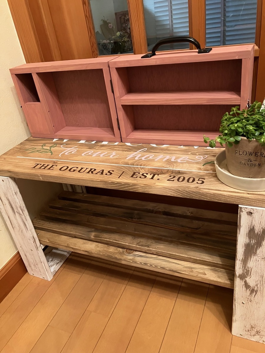 トップ > DIY > インテリア > トランク風小物ケース おぐっち 2023/04/26 11:23 トランク風小物ケース 昨日はお初の店舗さんへ遠征して、トランク風小物ケースを作ってきました〜 色はウォルナットと悩みつつ、オールドピンクで❣️ 組み立ての際ビス止めが微妙にズレてしまい、何度もやり直しながらやっと完成😅 玄関のシェルフベンチの上に置いてみたら可愛いので、使い途が決まるまでトランク風オブジェとして飾っておこうかな😊 いいね 共有する 共有する X LINE リンクをコピー コメントする 7 件の返信 (新着順) ミュートしたユーザーの投稿です。 投稿を表示 えむ 2023/04/27 05:52 シェルフベンチもwsで作成したものですか? この脚どうやってペイントしたんだろう? とてもピンクがアクセントになっていて 素敵ですね✨ しばらくは玄関でお出迎えですね。 ドア開けるのが楽しみ❣️ いいね 返信する ミュートしたユーザーの投稿です。 投稿を表示 おぐっち 2023/04/27 11:55 えむさん コメントありがとうございます💕 シェルフベンチもWSで作りました〜 脚はホワイトを塗った後にサンドベージュを刷毛塗りしてます 本来の使い方ではありませんが😅 玄関が可愛くなって良かったです😊 いいね 返信する ミュートしたユーザーの投稿です。 投稿を表示 ふーふーちゃん 2023/04/26 15:54 かわい〜い💞 素敵な色👏 いいね 返信する ミュートしたユーザーの投稿です。 投稿を表示 おぐっち 2023/04/26 18:18 ふーふーちゃんさん コメントありがとうございます💕 この色、可愛くしたい作品の時にはおすすめです😊 いいね 返信する ミュートしたユーザーの投稿です。 投稿を表示 Lulu 2023/04/26 15:52 オールドピンク可愛いですね😆💕✨ 何も入れなくても素敵なオブジェですね🤗 いいね 返信する ミュートしたユーザーの投稿です。 投稿を表示 おぐっち 2023/04/26 18:16 Luluさん コメントありがとうございます💕 まさかオブジェになるなんて、思ってもいませんでしたが、トランクの型可愛いですよね😊 いいね 返信する ミュートしたユーザーの投稿です。 投稿を表示 M 2023/04/26 13:06 ステキな色ですね✨ ベンチとの相性も良いですね😍 いいね 返信する ミュートしたユーザーの投稿です。 投稿を表示 おぐっち 2023/04/26 18:11 Mさん コメントありがとうございます💕 両作品ともアンティークな色なので、相性が良かったみたいです😊 いいね 返信する ミュートしたユーザーの投稿です。 投稿を表示 coco⭐️ 2023/04/26 12:58 オールドピンク良いですよね😊💕 私もこの色で作りました‼️ アレンジ予定なんですが、なかなか出来ずにいます😅 中に何を入れるか考えるのも楽しですよね🎵 いいね 返信する ミュートしたユーザーの投稿です。 投稿を表示 おぐっち 2023/04/26 18:08 cocoさん コメントありがとうございます💕 cocoさんの作品拝見しました〜 リメシート使いさすがですね👏 実はキッズチェアもオールドピンクで作っていて、会長さんとお揃いです😊 いいね 返信する ミュートしたユーザーの投稿です。 投稿を表示 coco⭐️ 2023/04/26 18:50 おぉ‼️😆キッズチェアもご一緒なんですね💓 甘すぎないオールドピンク🩷良いですよね😉 いいね 返信する ミュートしたユーザーの投稿です。 投稿を表示 べるん 2023/04/26 12:20 オールドピンク可愛いですね💕 お写真を見ていたら、可愛い小物を飾りたくなりました😅 いいね 返信する ミュートしたユーザーの投稿です。 投稿を表示 おぐっち 2023/04/26 18:05 べるんさん コメントありがとうございます💕 飾れるような可愛い小物が無くて、今のところどうやって使うか考え中です😅 いいね 返信する ミュートしたユーザーの投稿です。 投稿を表示 和ちゃん 2023/04/26 12:01 おぐっちさん オールドピンクの可愛いトランク風小物ケースですね✨ シェルフベンチの上にオブジェとして置いて素敵な空間です😍 私も来月作るので、参考になります😊 いいね 返信する ミュートしたユーザーの投稿です。 投稿を表示 おぐっち 2023/04/26 17:59 和ちゃんさん コメントありがとうございます💕 置き場所に悩んで置いてみたら良い感じでした😊 和ちゃんさんが来月作られる作品、楽しみにしてます♫ いいね 返信する