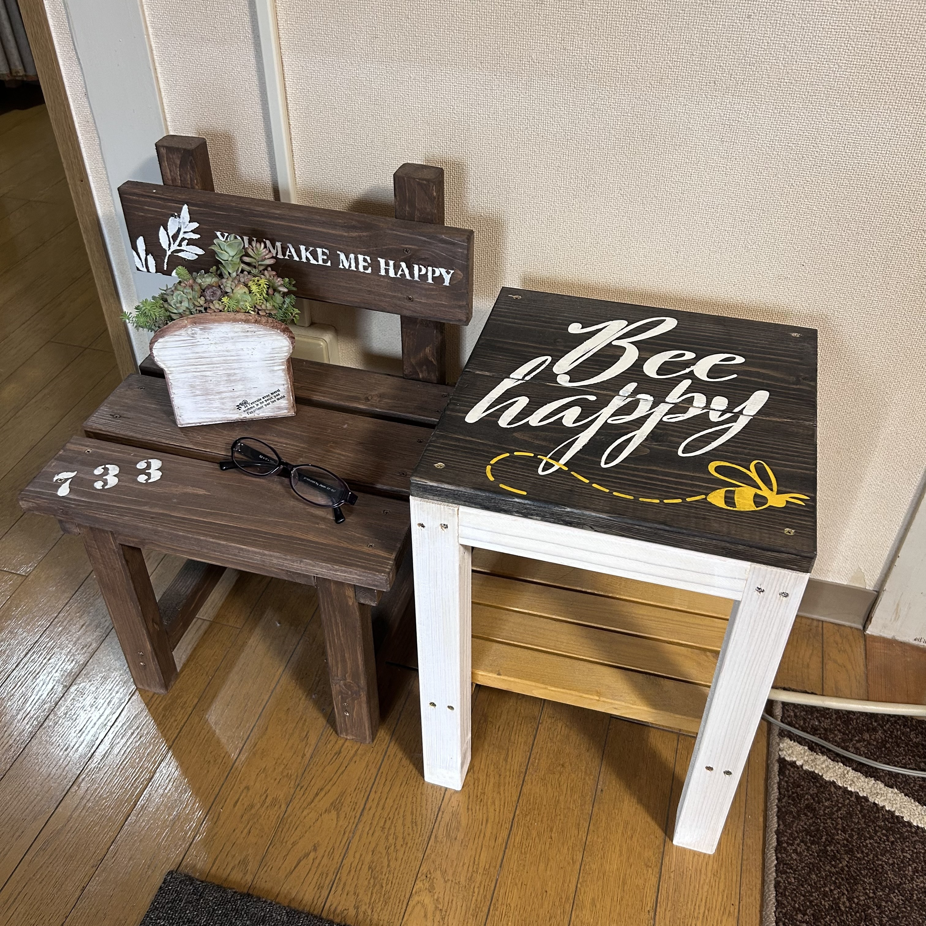 我が家もWSで作った椅子たちを、キッチンや廊下や洗濯物を干す窓の側など…あちこちに置いてあります😁