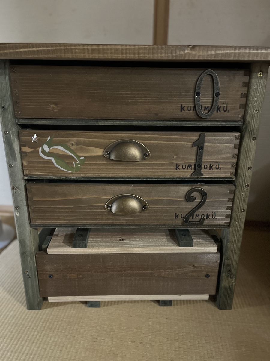 トップ > DIY > インテリア > 夏のDIY2022【引き出し付サイドテーブル】 しょうしん 2022/08/12 21:49 夏のDIY2022【引き出し付サイドテーブル】 初めはWSに参加して一段の引出しでした。 それがやっぱり欲しいと思い二段にしました。 その後、やっぱり更に欲しいと思い、三段になりましたwww 木材カットして色塗って取り付けるだけなので、 2時間ほどで完成。 取手がない事に気づいたので、 明日のWS時に購入しようと思います。 さすがに四段にはしませんwww 「3」がなかったので「0」にしましたw下にミニアンモボックスを置いてもちょうどピッタリでした。 いいね 共有する 共有する X LINE リンクをコピー コメントする 2 件の返信 (新着順) ミュートしたユーザーの投稿です。 投稿を表示 go2 2022/08/13 08:47 引き出し付きサイドテーブル素敵です アレンジ素晴らしいですね このWS訳あってできなかったので いつか何処かで作りたいと思います その時は是非 しょうしんさんの作品参考にしたいと思います🎶🎶 いいね 返信する ミュートしたユーザーの投稿です。 投稿を表示 しょうしん 2022/08/13 18:40 ありがとうございます😊 多分3段まではそのままで追加できると思いますよ。 ぜひぜひ追加して自分好みの作品にしてくださいね。 いいね 返信する ミュートしたユーザーの投稿です。 投稿を表示 ぷりぶり 2022/08/12 23:03 しょうしんさん ひょっとしてしょうしんさんも引き出しマニアだったかと思わせてくれる作品ですね🤭💕 4段目も…って、アンモボックスの場所がなくなっちゃうから、これで終わりですね〰️😂 ステンシルはされないのですか🥺❓ いいね 返信する ミュートしたユーザーの投稿です。 投稿を表示 しょうしん 2022/08/13 06:44 ありがとうございます😊 作り出したら楽しくて、 しかも簡単なのでついついw 引出し職人のぷりぶりさんの足元にも及びませんよ。 いいね 返信する