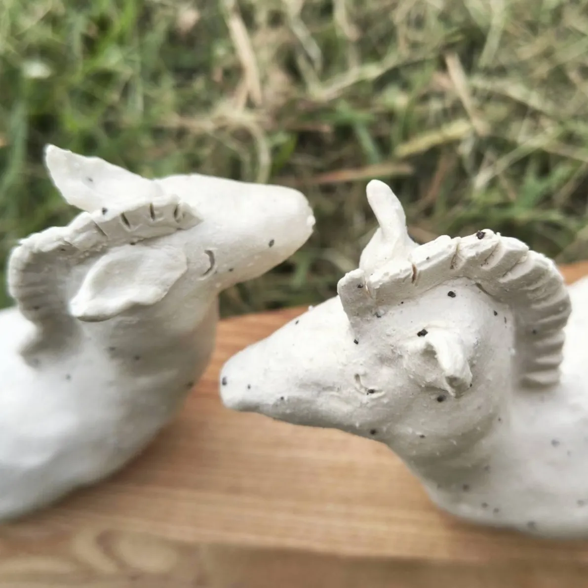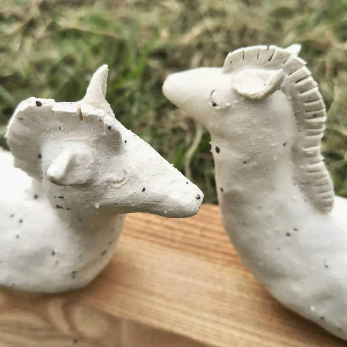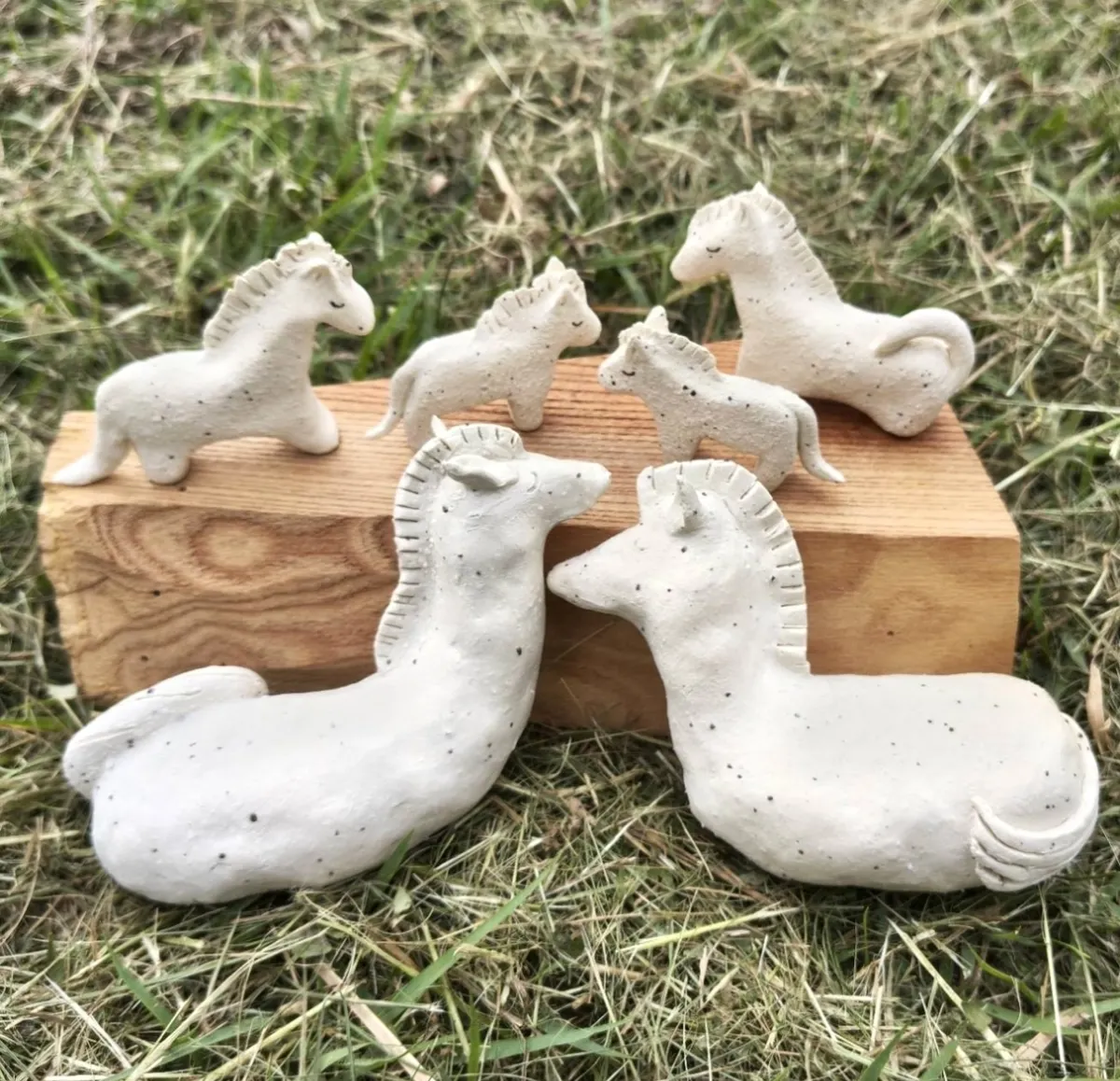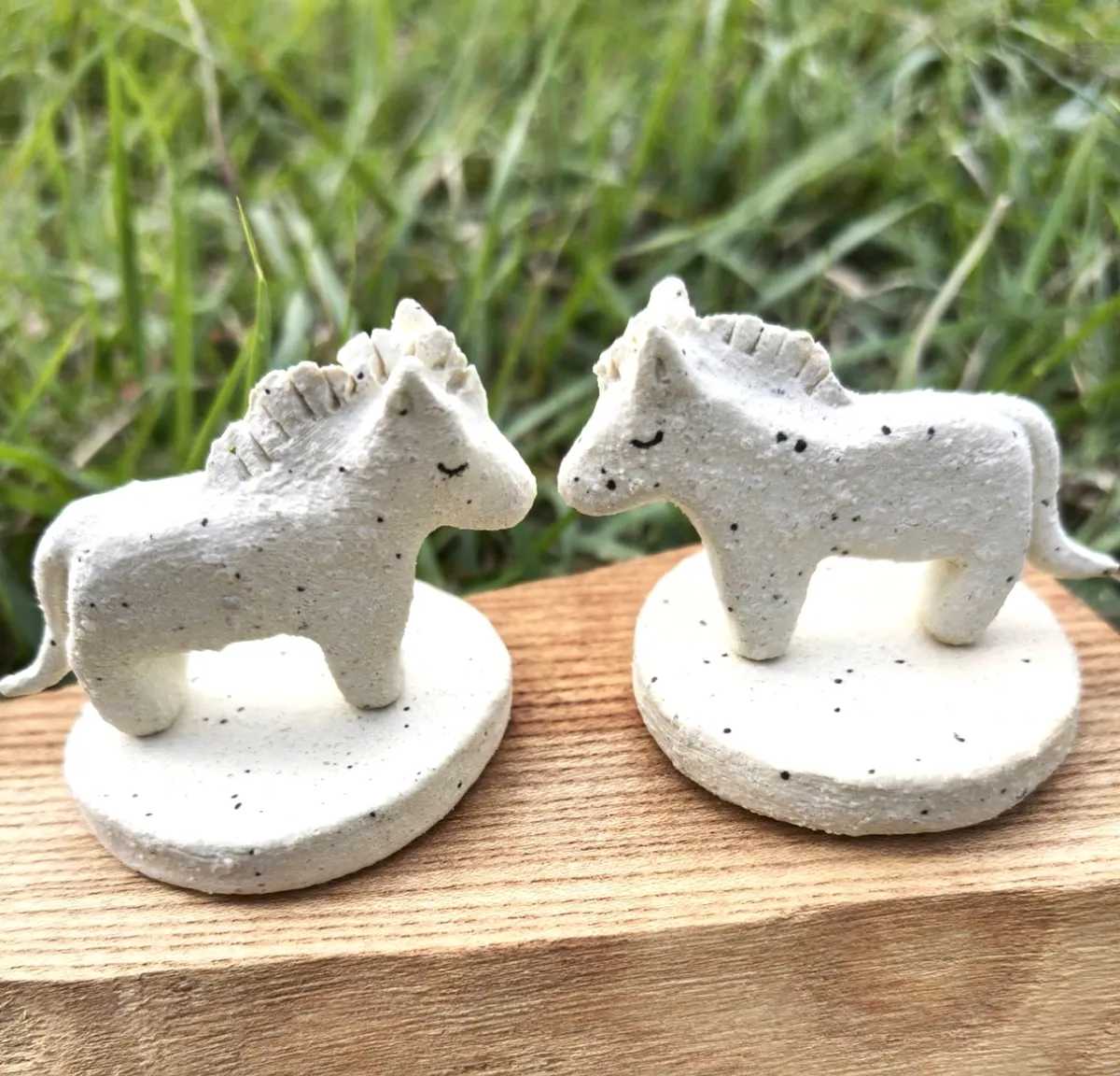 トップ > お正月DIY > キャンペーン > 陶の馬 ~家族勢揃い 賑やかお正月~ ふたつの虹 2026/01/10 12:17 陶の馬 ~家族勢揃い 賑やかお正月~ ■作品内容 陶土で作った今年の干支 午の置物、オブジェ ■工夫ポイント ①白や黒の細かな石が入っている白御影土で作陶 ②土の素朴さを活かすために無釉(ザラザラした質感) ③大・中・小 各2頭ずつ ④中・小サイズは軽くて華奢なので、安定のために同土の台座も制作 ⑤表情はとにかく『やさしく穏やか』を意識して描き、彫りました ⑥1頭だけでも可愛いですが、勢揃いさせるとやっぱりほっこり感が増すような気がします~ ※中・小の4頭は有り難いことに、早々にお迎え入れいただきました🐴💕🏠 お正月飾り部門 干支部門 ふたつの虹 干支 馬 午 陶芸 置物 オブジェ いいね 共有する 共有する X LINE リンクをコピー コメントする 0 件の返信 (新着順)