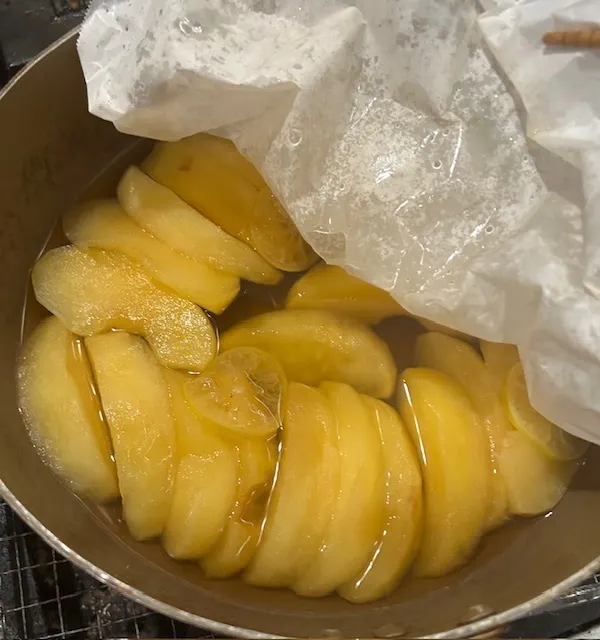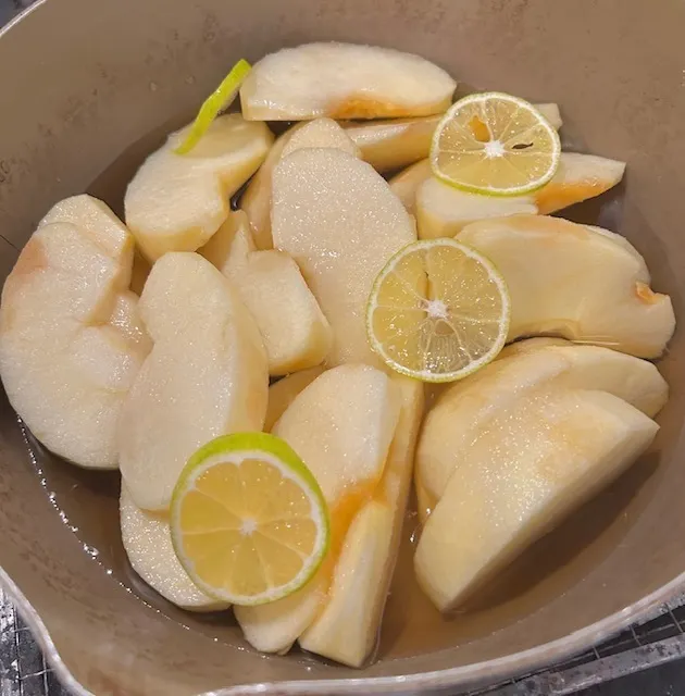 リンゴ、白ワイン、グラニュー糖、レモンの輪切り