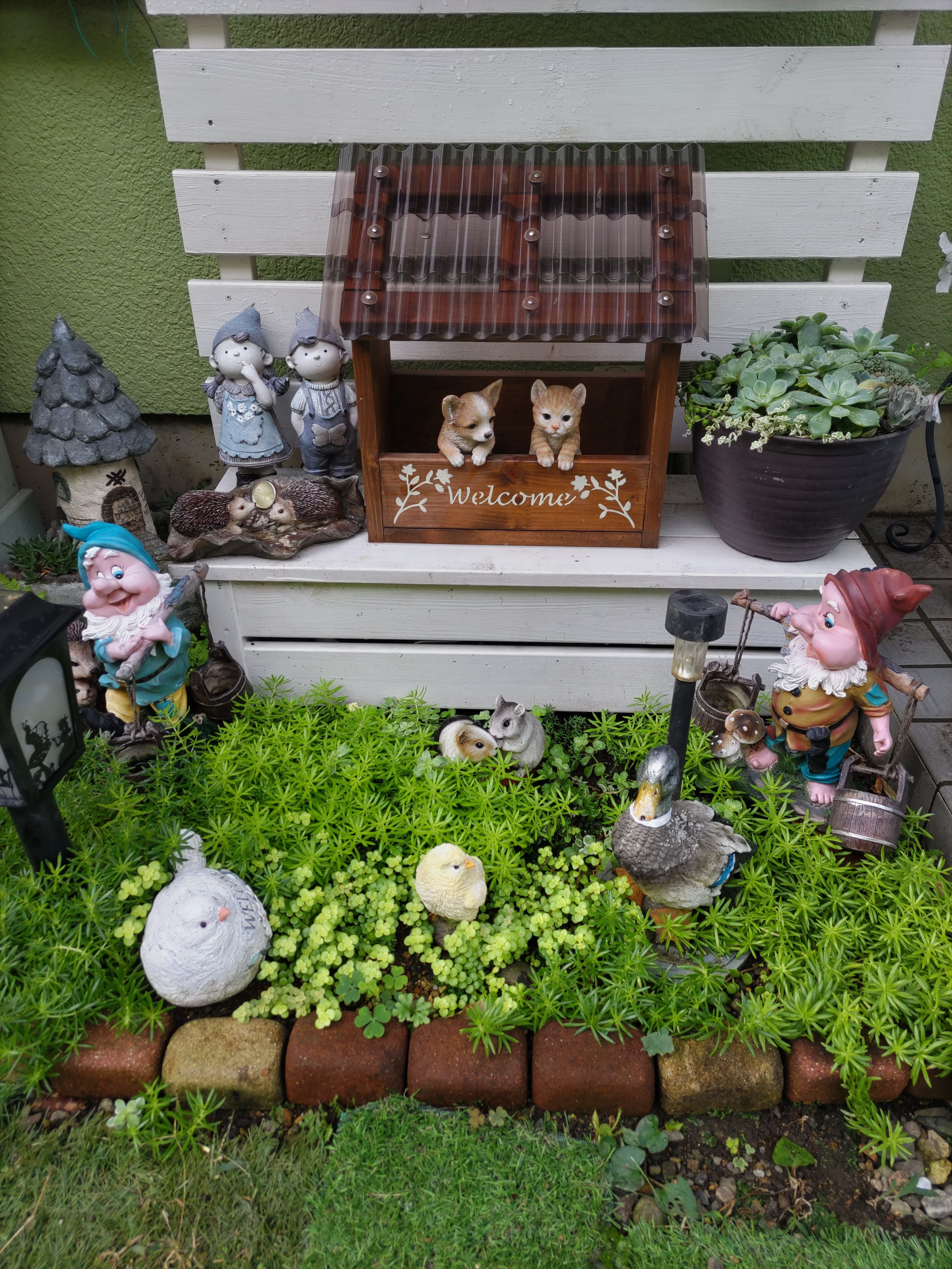 投稿を表示かわいいです💞モルタルのおうちも、小人や動物達も🤭セダムののっぱらで遊んでいるようですね☺️