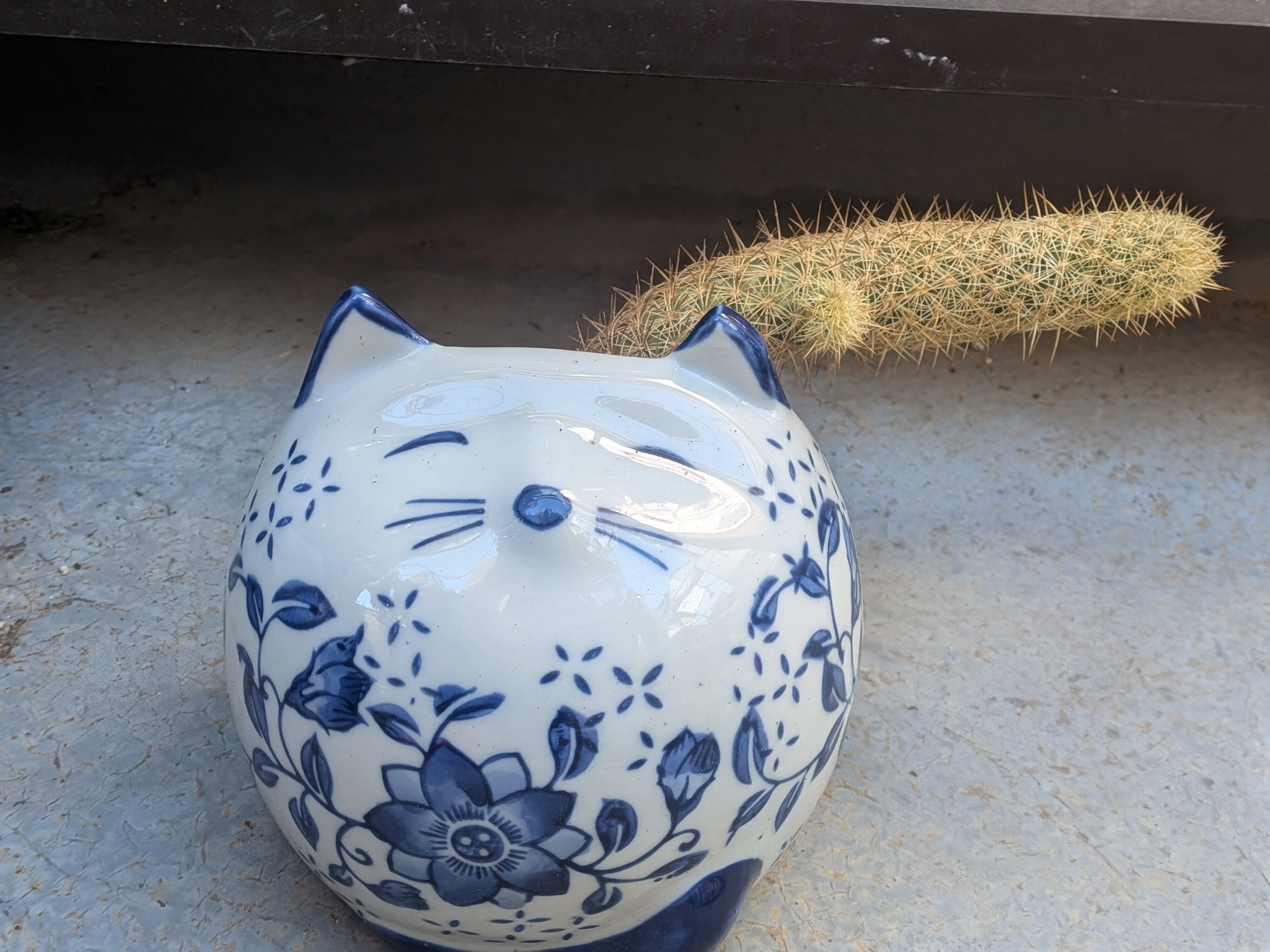 投稿を表示ホントにねこちゃんの鉢に尻尾が生えてきたみたい😸‼️こんなサボテン🌵の゙植え方も可愛いですね💞💞💞