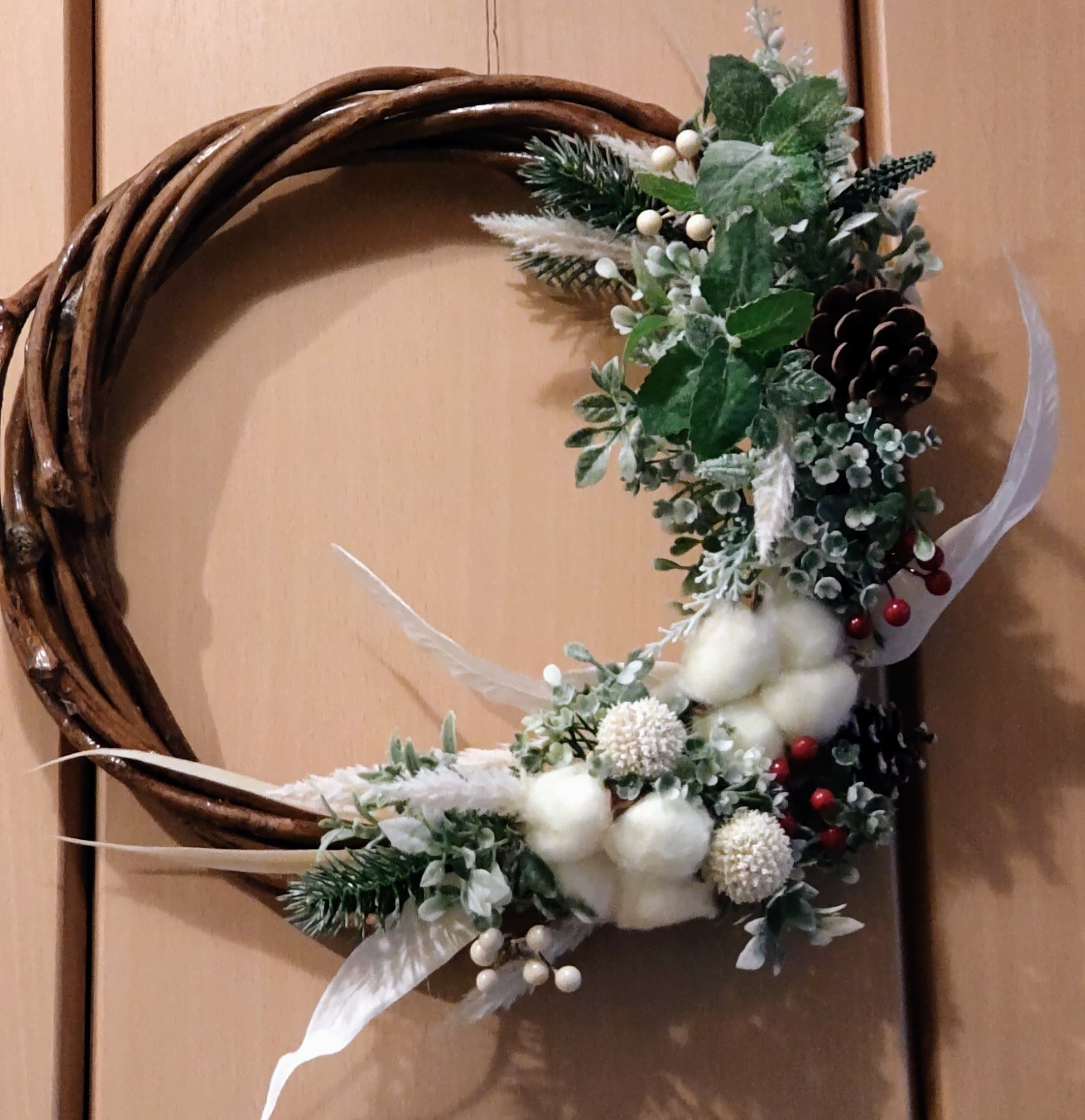 投稿を表示シンプルだけど、ホワイトクリスマスをイメージ出来る、素敵なリースですね😊💕