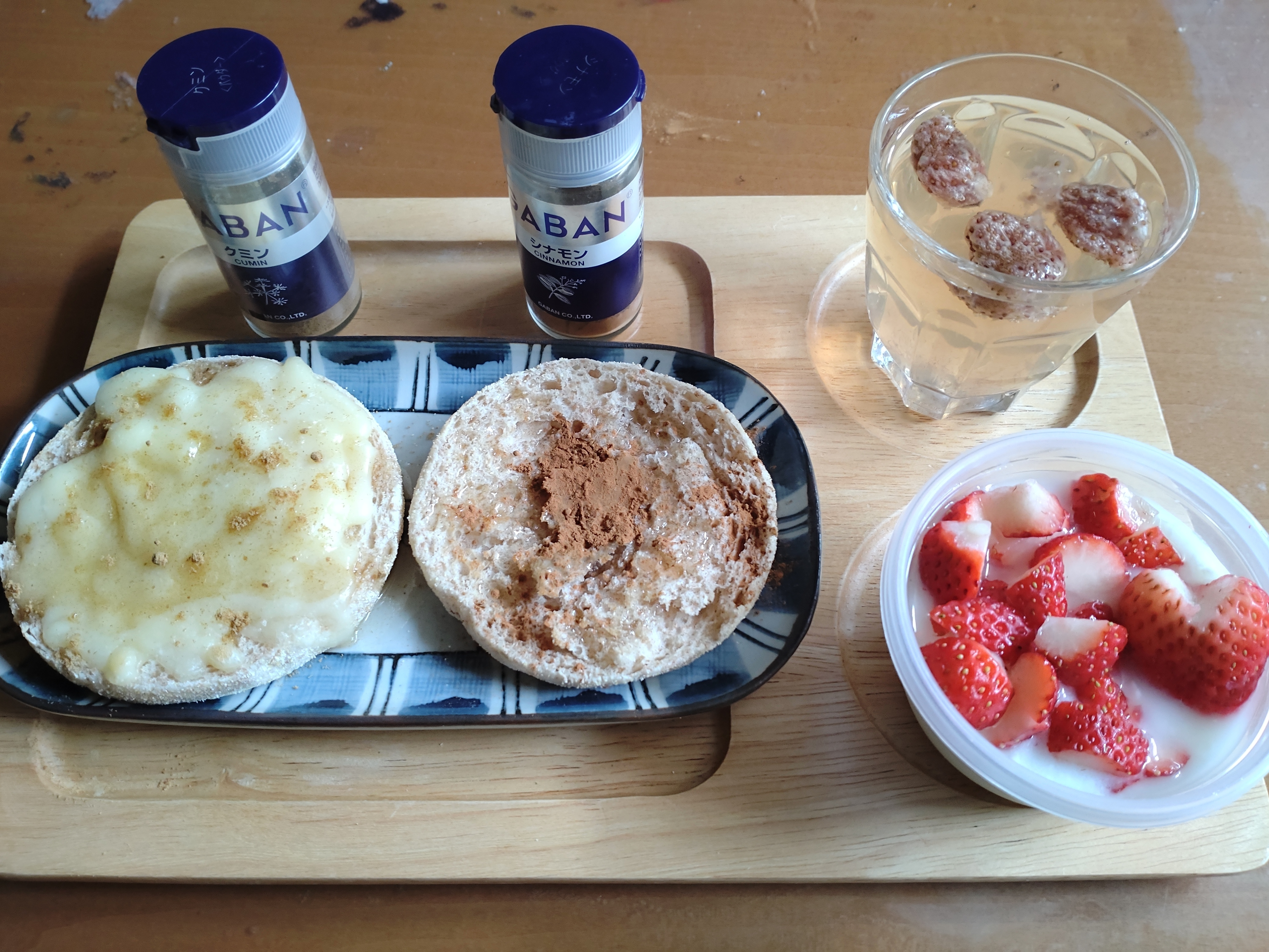 トップ > クッキング > 朝食にトーストを作りました。 **831**さん 2023/05/05 11:39 朝食にトーストを作りました。 はるかのん 朝食にトーストを2種類作りました。 チーズトーストには、チーズ、蜂蜜トッピングでクミンを使っています。 グッって見たら、このレシピがすぐにできるなぁと思いました。レシピにはクミンシード(粒)を使っていましたが、家にあるパウダーで代用。 もう1つは蜂蜜とシナモンのトーストです。 教えてもらいました。 トースト2種類美味しかったです。 残り少ないイチゴ🍓ジャムを炭酸水で割ってドリンクにしてます。 美味しかったです🤤 ごちそうさまです😁😁😁 いいね 共有する 共有する X LINE リンクをコピー コメントする 1 件の返信 (新着順) ミュートしたユーザーの投稿です。 投稿を表示 はるかのん 2023/05/05 12:49 831 さん こんにちは〜 クミン、シナモン+ 蜂蜜🍯 どちらも身体に良い組み合わせですよねー👍 クミン 買いに行かなきゃ〜😉 いいね 返信する ミュートしたユーザーの投稿です。 投稿を表示 **831**さん 2023/05/05 13:09 こんにちわ🎏 蜂蜜とシナモンのトースト美味しかったです。 教えて貰わなかったら、クミンには思いつきませんでした。シナモンとクミンを間違えてですけど。 ピザにブルーチーズと蜂蜜の組み合わせがありますが、味は違いますが、こんな感じです。 また、宜しくお願いしますね😊 いいね 返信する ミュートしたユーザーの投稿です。 投稿を表示 はるかのん 2023/05/05 18:07 831 さん 返信ありがとうございます♪♬♪ こちらこそ宜しくお願いしますネ😊 いいね 返信する