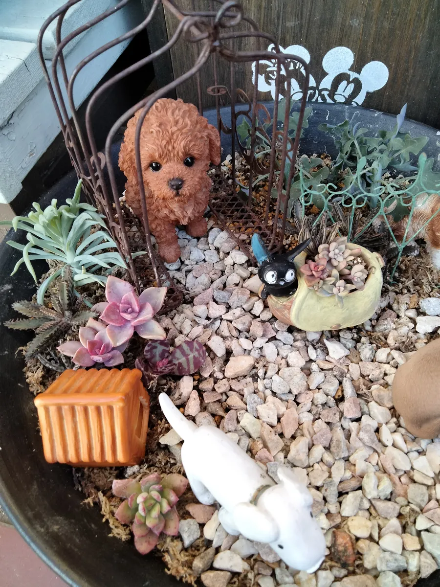 投稿を表示多肉とワンコ達で箱庭の寄せ植え可愛いですね😊🎶