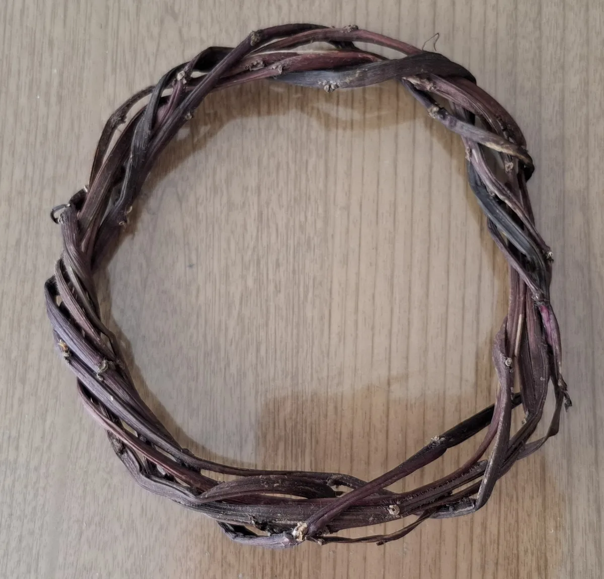 先日、収穫準備したサツマイモのつるを使ってリースを作りました。