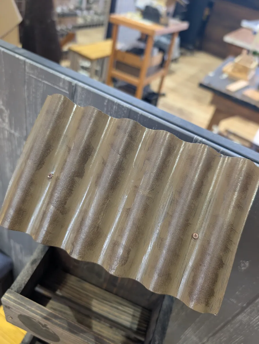 色合いは木部保護塗料のブラックをつかって、余分な塗料は拭き取りでやって木目を出してみました。