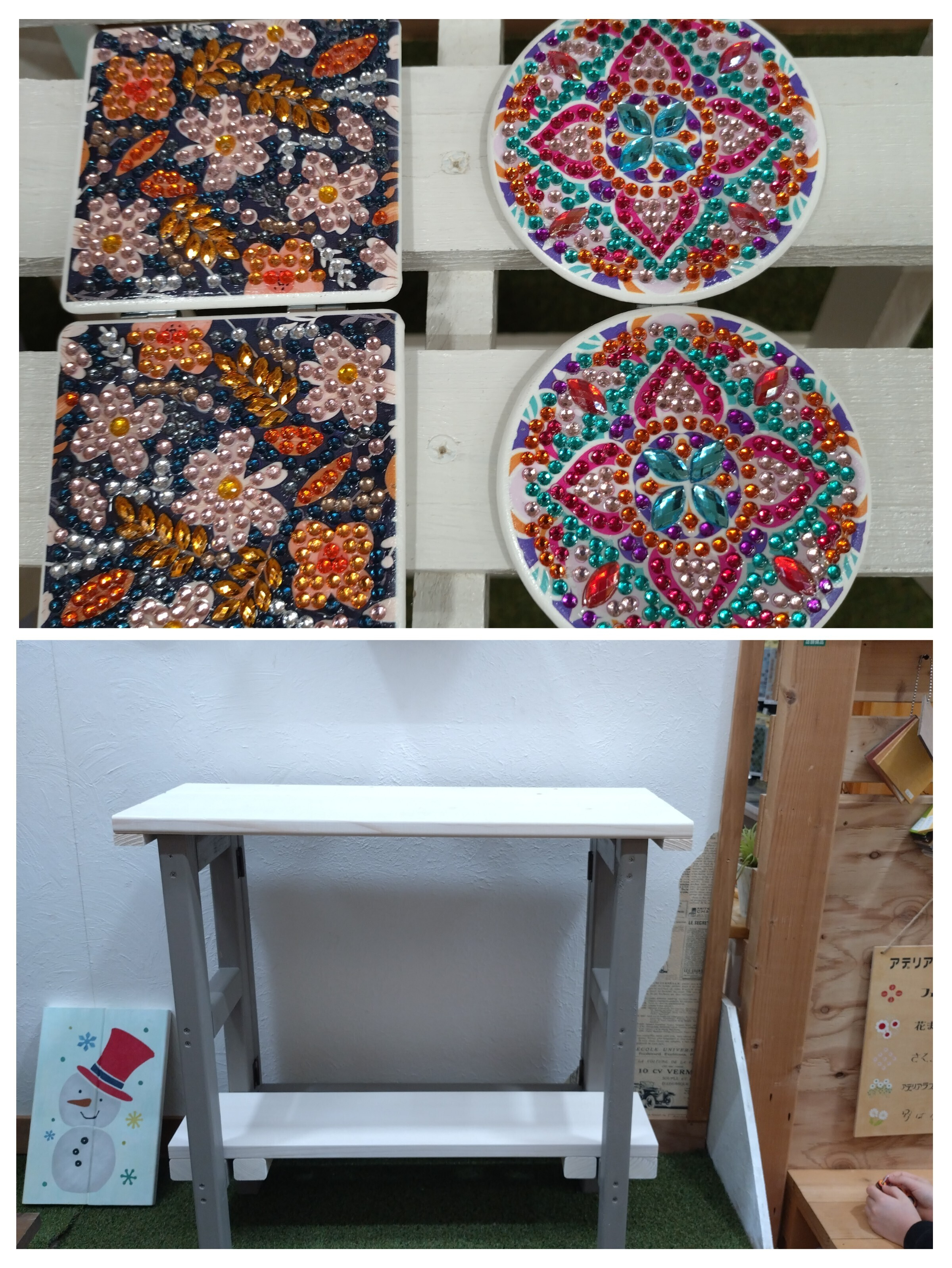トップ > ワークショップ > 小物・雑貨 > ビーズで彩るコンパクトミラー、折りたたみ2段シェルフ ゆいあや 2026/02/23 15:28 ビーズで彩るコンパクトミラー、折りたたみ2段シェルフ マイストアで作った2作品です✨ ミラーは、サークルピンク2つだと、目印をつけないとモメそうなので、私がスクエアネイビーにしました🤭 ド近視で網膜剥離の手術して10年、細かな作業は避けてきましたが、娘の「楽しそう!ミラー作りたい😻」で参加しました🤣 娘より先に完成しましたが、飛蚊症の数が増えそうで、冷たいようですがお手伝いは出来なくて⋯💦「楽しかったよー」と言ってもらえて嬉しかったです♫ 折りたたみ2段シェルフは、娘の作業台?にもなっちゃうかもしれないです😅 いいね 共有する 共有する X LINE リンクをコピー コメントする 2 件の返信 (新着順) ミュートしたユーザーの投稿です。 投稿を表示 suimo 2026/02/25 20:37 細かな作業大変な中、素敵な作品ができて良かったですね✨娘さんと一緒にできるのは楽しいですよね🎶二段シェルフも良いですよね👍️2つ作りました😆 いいね 返信する ミュートしたユーザーの投稿です。 投稿を表示 ゆいあや 2026/02/26 06:26 suimo コメントありがとうございます😄 2人で作れて楽しかったです🎶 娘は1人で頑張って完成されたので、帰りにご褒美スイーツを買いました✨ 2段シェルフ、使い勝手が良くてもう一つ欲しいのですが、丁番が苦手で💦 なので、2つ作られたのは凄いですね🤩 いいね 返信する ミュートしたユーザーの投稿です。 投稿を表示 suimo 2026/02/26 08:41 ゆいあや 自分は四脚のものが苦手です。ガタガタしがち😆でもアドバイザーさんに調整してもらったりで、何とか作ってます。使わないときはしまっておけるので良いですよね。 いいね 返信する ミュートしたユーザーの投稿です。 投稿を表示 はっちゃん 2026/02/26 09:50 suimo 両方とも素敵 いいね 返信する ミュートしたユーザーの投稿です。 投稿を表示 ゆいあや 2026/02/26 12:40 suimo 私も四脚ものはガタつきますね💦 今回はアドバイザーさんが付きっきりでサポートしてくださり、ガタガタなしで出来ました♫ 折りたたむ度に、片脚だけ天板をゴリゴリすりながら、押し込んでいるので、広げたままにしようかな〜とも考えています🤣 作品自体は折りたためるので、とてもいいんですよね🤩 いいね 返信する ミュートしたユーザーの投稿です。 投稿を表示 kao 2026/02/24 18:59 どちらも素敵な仕上がりですね😻 私も今日2段シェルフ作りました🪜 今回の脚みたいに下穴が長いと、どうしても曲がってしまうのですが、キチンと1列に揃っているのホント尊敬します🤩 色もキレイだし、娘さん喜びますネ❣️ いいね 返信する ミュートしたユーザーの投稿です。 投稿を表示 ゆいあや 2026/02/25 00:14 kao 私のも見にくださってありがとうございます😊 1列になっていると褒めていただいて嬉しいです✨ いま全体を見回して気付いたのですが、正面以外のビス、綺麗に片側へ寄っているんです🤣 べた塗りしても結構目立ちますね!奇跡の正面でした🤭 娘も気に入ったいます!片方だけゴリゴリ押し込んで閉めているのも含めて…😆 いいね 返信する