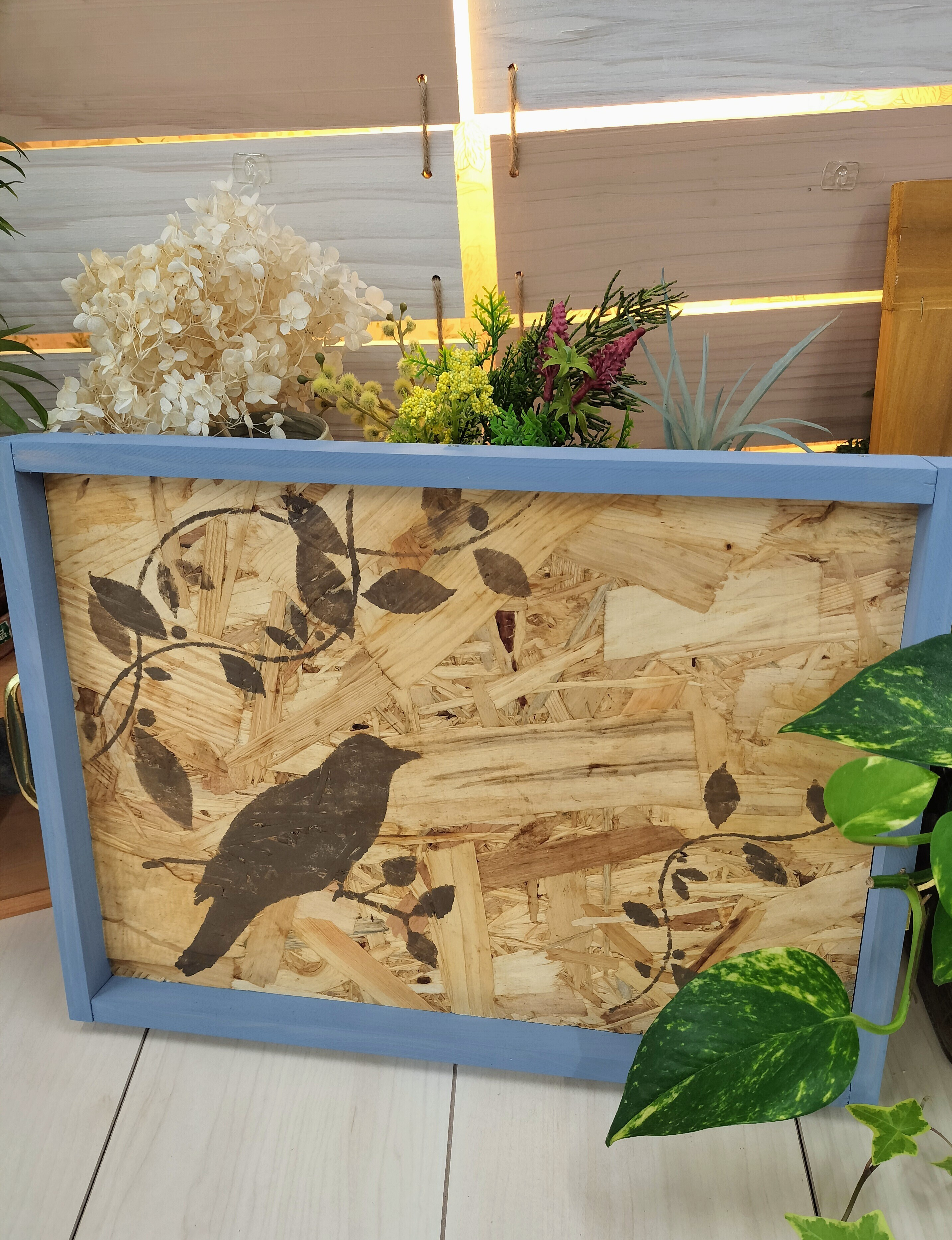 初めてのステンシル OSB合板のカフェトレイ