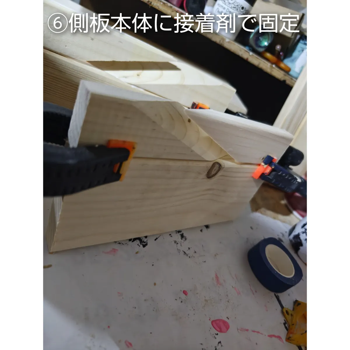 15度カットしたパーツを側板本体にどうやって連結しようか考えていたところ気が付きました。