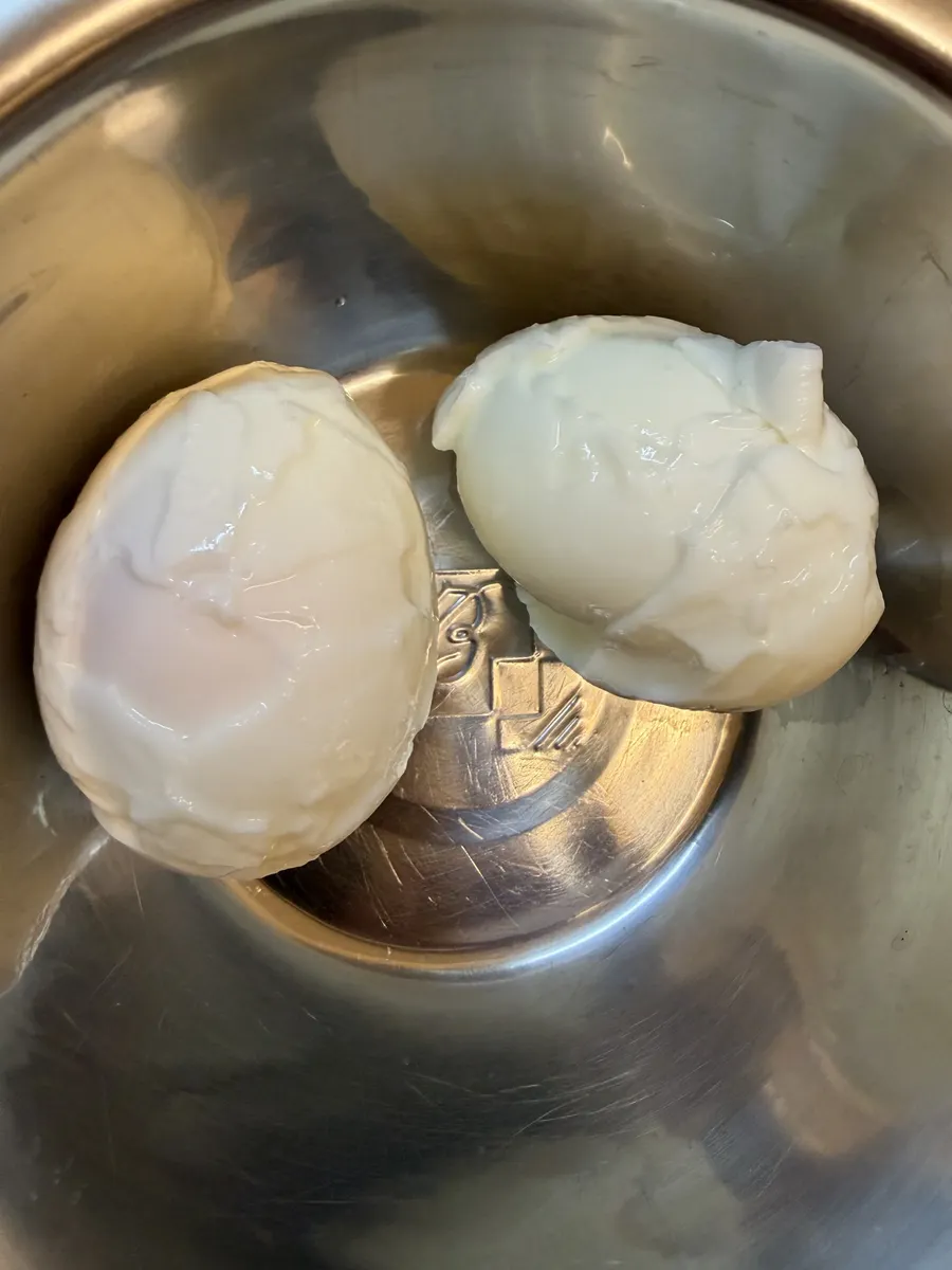 投稿を表示ゆで卵、半熟で凄く美味しそうです。新鮮卵のアルアルですね。