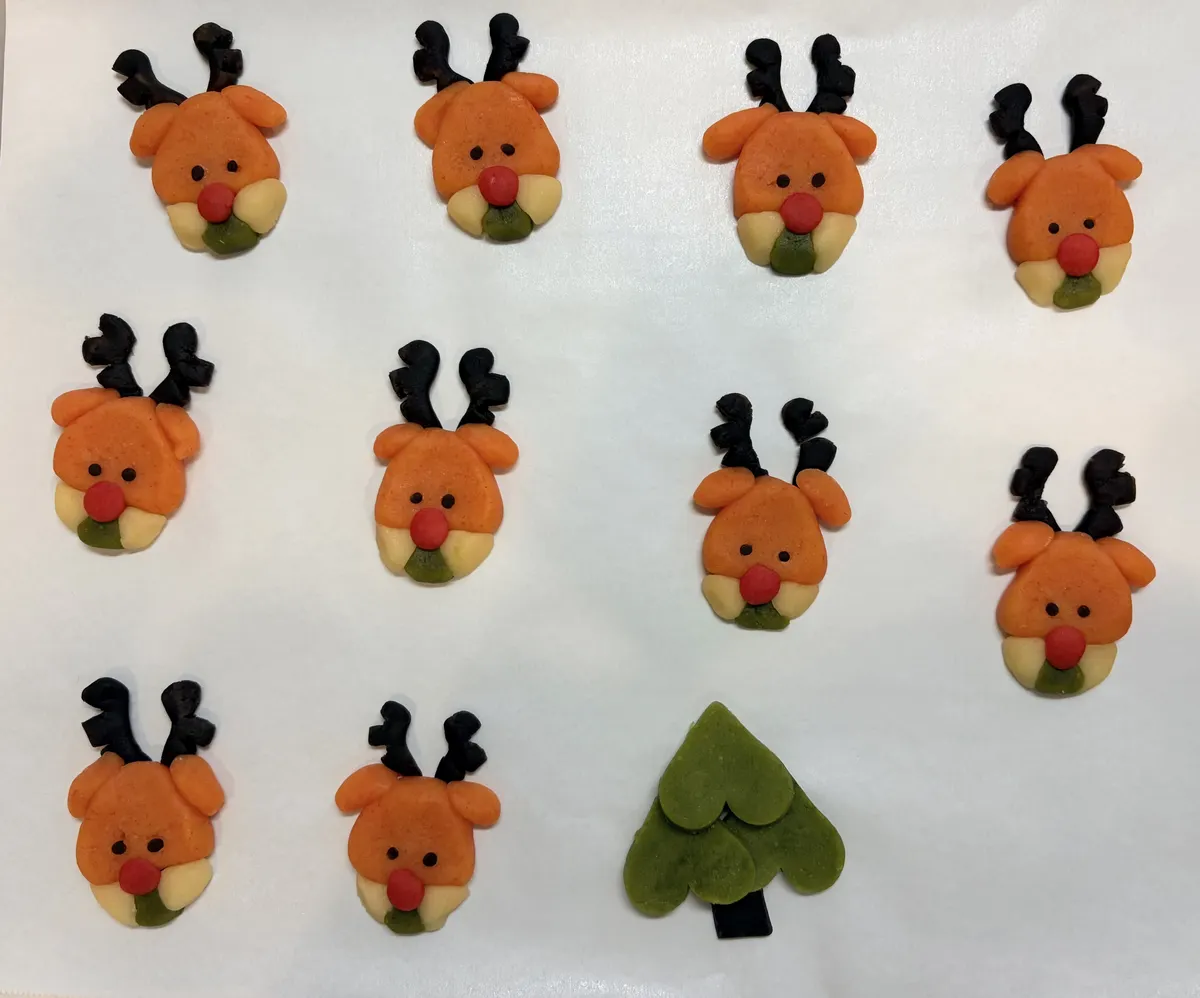 また、トナカイとサンタさんの目とトナカイの角はココア生地で、目はものすごく小さいので作るのに一苦労😅