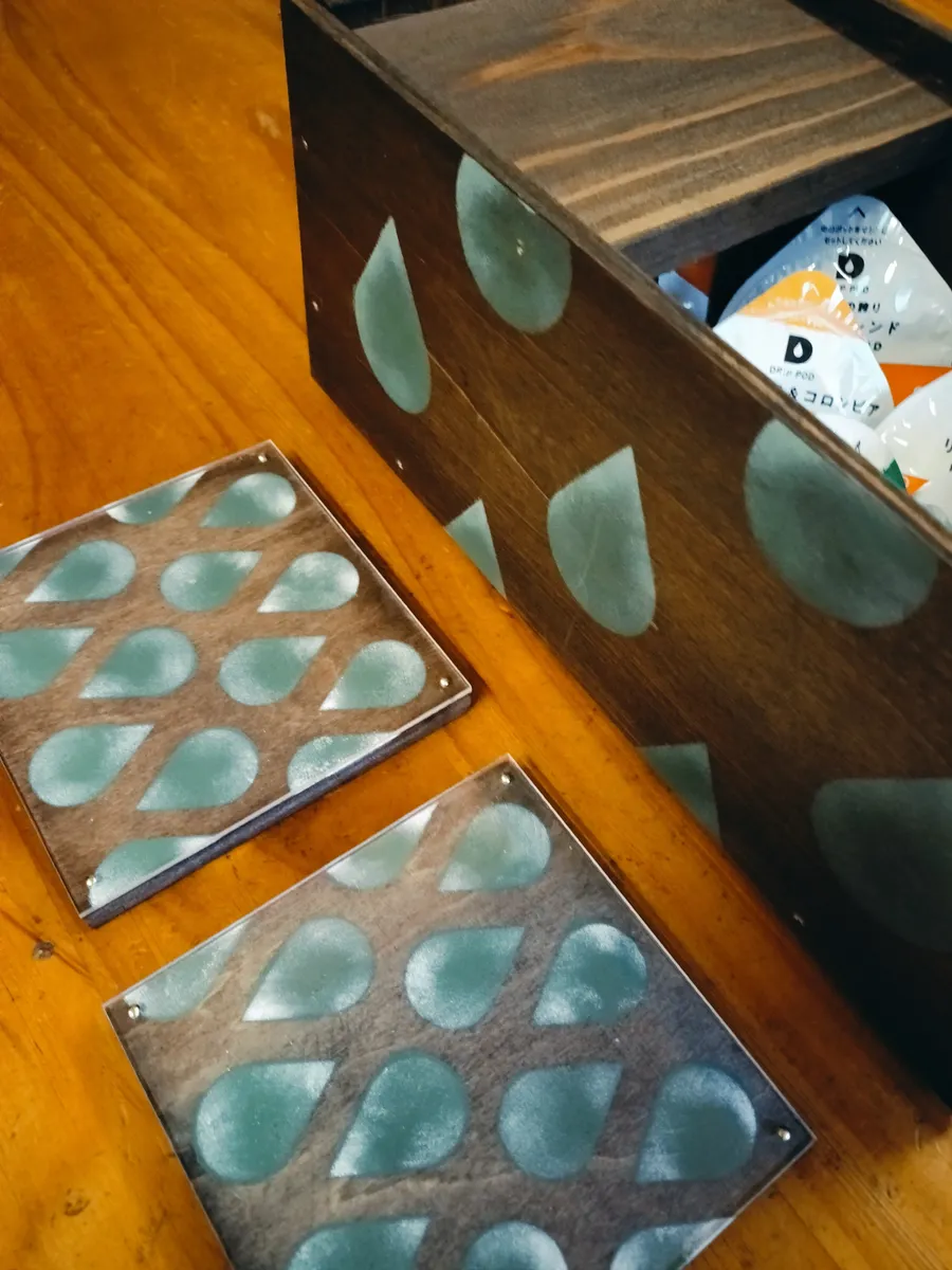 カップのお色ともマッチしていて、コースターの柄が浮き上がってくる様に見えて、とても素敵です💚🤎
