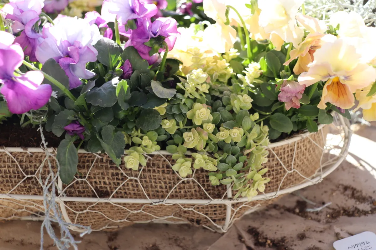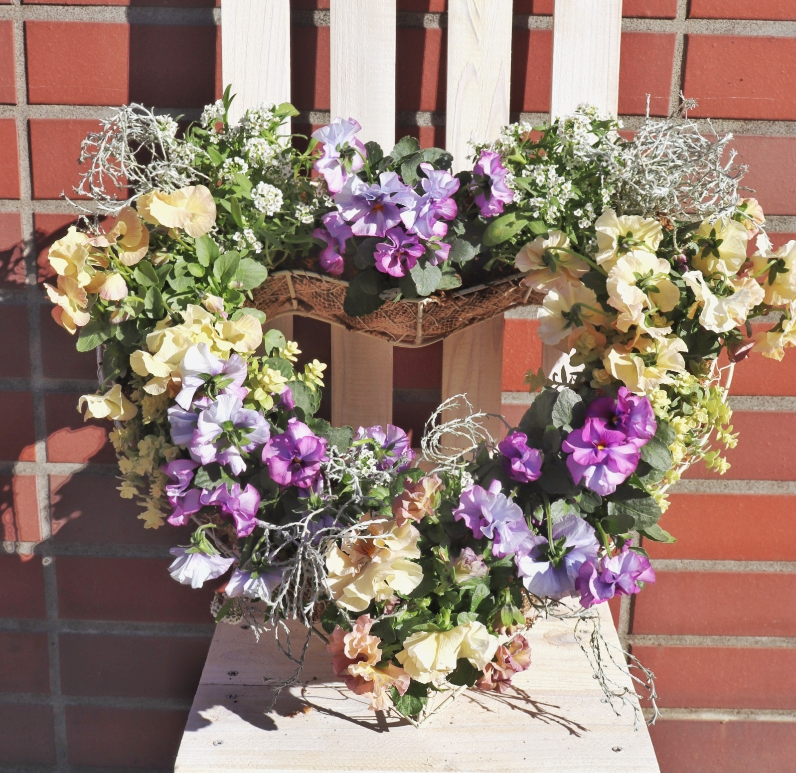 ミニパンジーをメインにハート型のリースを作りました🌸✨