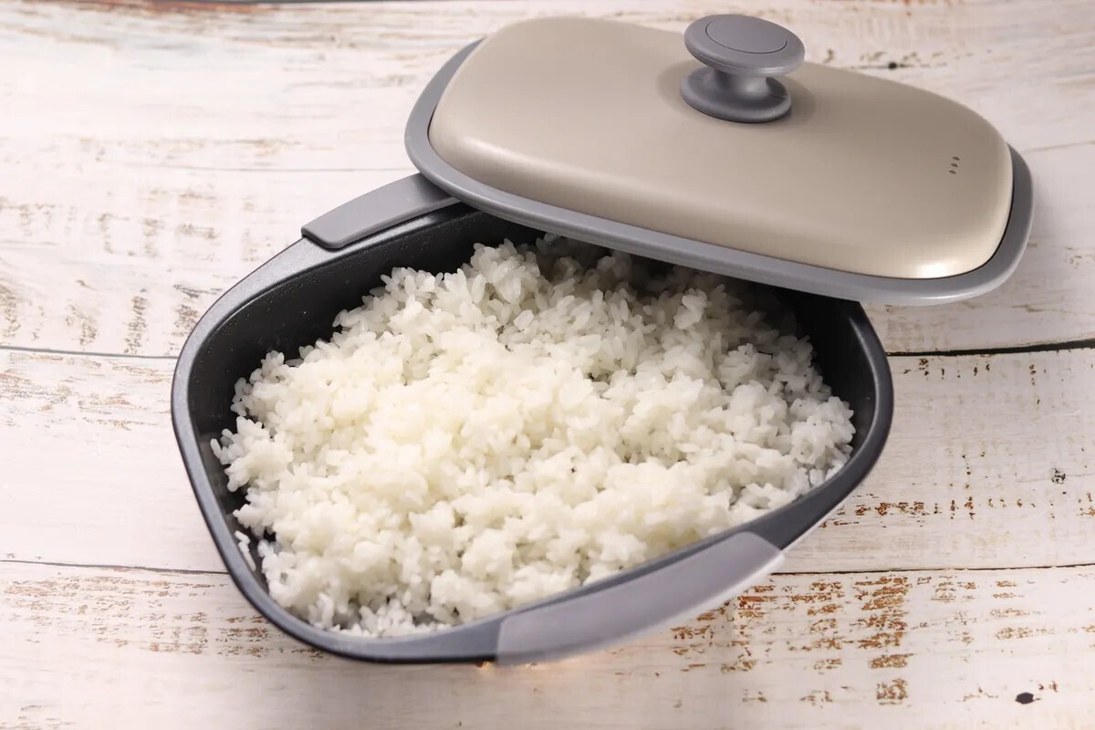 ①米は洗ってレンジグリルに入れる。水も入れ、30分吸水させる。 |