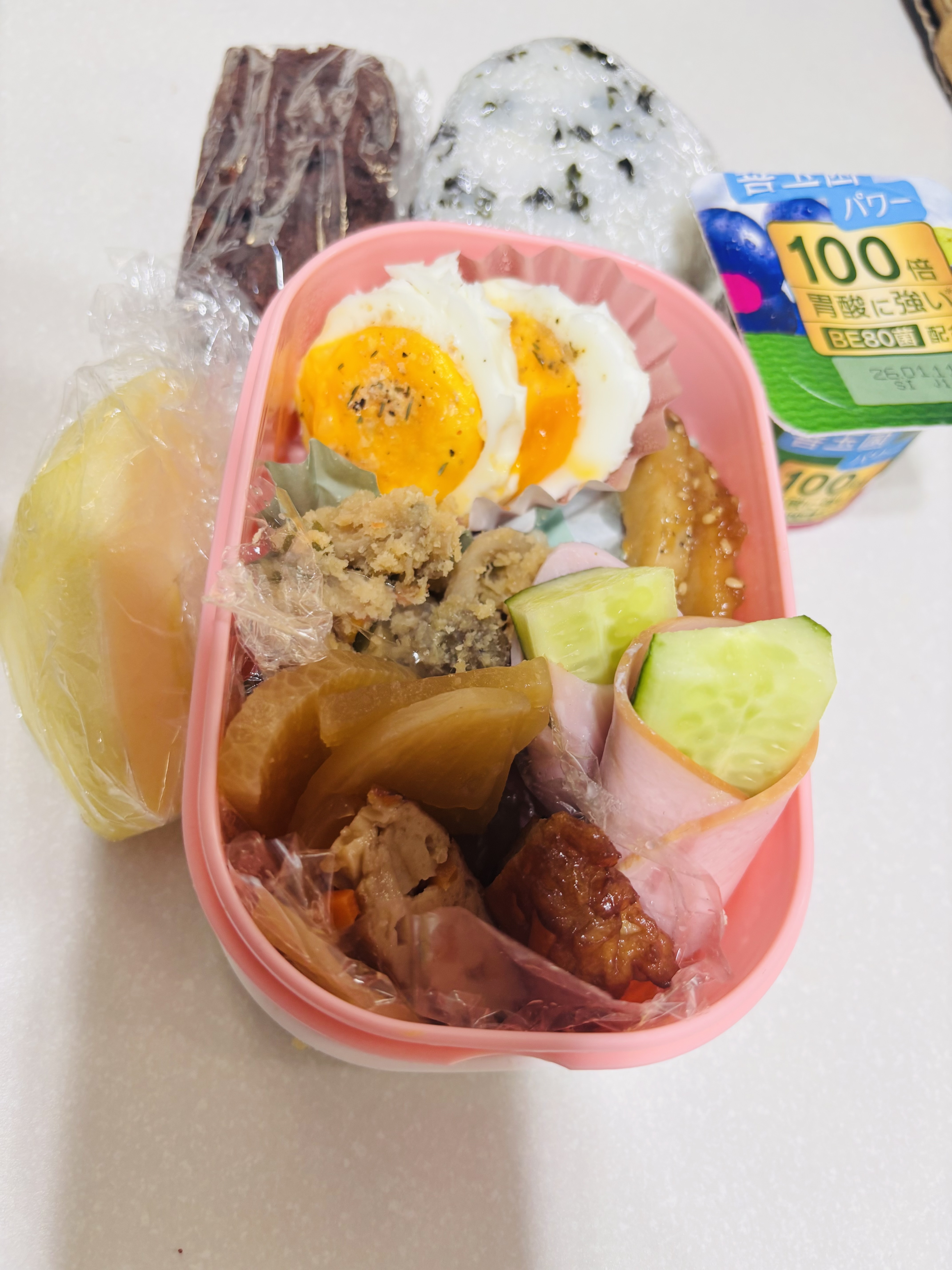 トップ > クッキング > 料理 > 今日のお弁当 マリーモミ 2025/12/16 00:01 今日のお弁当 昨夜の残り物 ゆで卵ら殻がよくむけず💦 いいね 共有する 共有する X LINE リンクをコピー コメントする 1 件の返信 (新着順) ミュートしたユーザーの投稿です。 投稿を表示 ハッピー 2025/12/16 08:23 品数が多く、バランスが良いですね👌^_^ 元気がでそうなお弁当ですね🍱 いいね 返信する ミュートしたユーザーの投稿です。 投稿を表示 マリーモミ 2025/12/16 17:37 ハッピー 残り物と作り置きなので茶色が多いですがお弁当作るのにあると便利です😁 いいね 返信する ミュートしたユーザーの投稿です。 投稿を表示 ハッピー 2025/12/16 18:16 マリーモミ 茶色のおかずっておいしいですよねー😋 毎日息子にお弁当を作っているのですが、三品ほどしか入れません😅 いいね 返信する ミュートしたユーザーの投稿です。 投稿を表示 マリーモミ 2025/12/16 22:58 ハッピー ありがとうです💘 息子ちゃんだと飯が多いですよね😁 私も三年間作りました😅 何を入れたとか覚えていないです😆 3品あれば充分です👍 おばちゃんは基本残り物ですから😁 ハッピーさん お弁当作り頑張って下さい💪 いいね 返信する