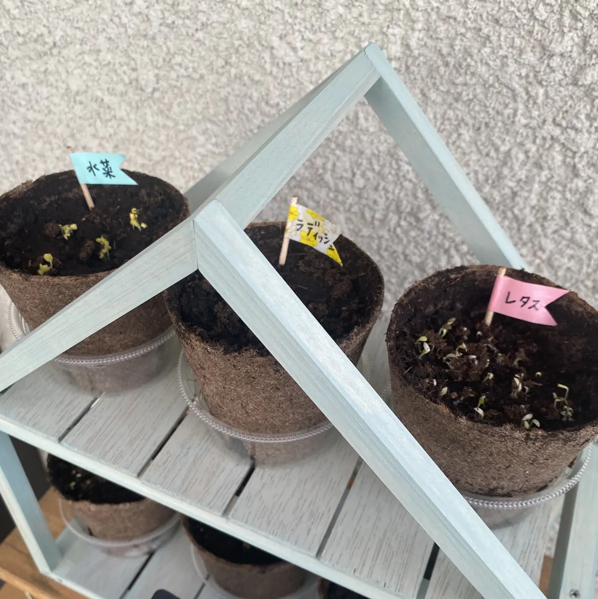 早速 レタスと水菜🥬に芽がでてきて、これからが楽しみですね🎶