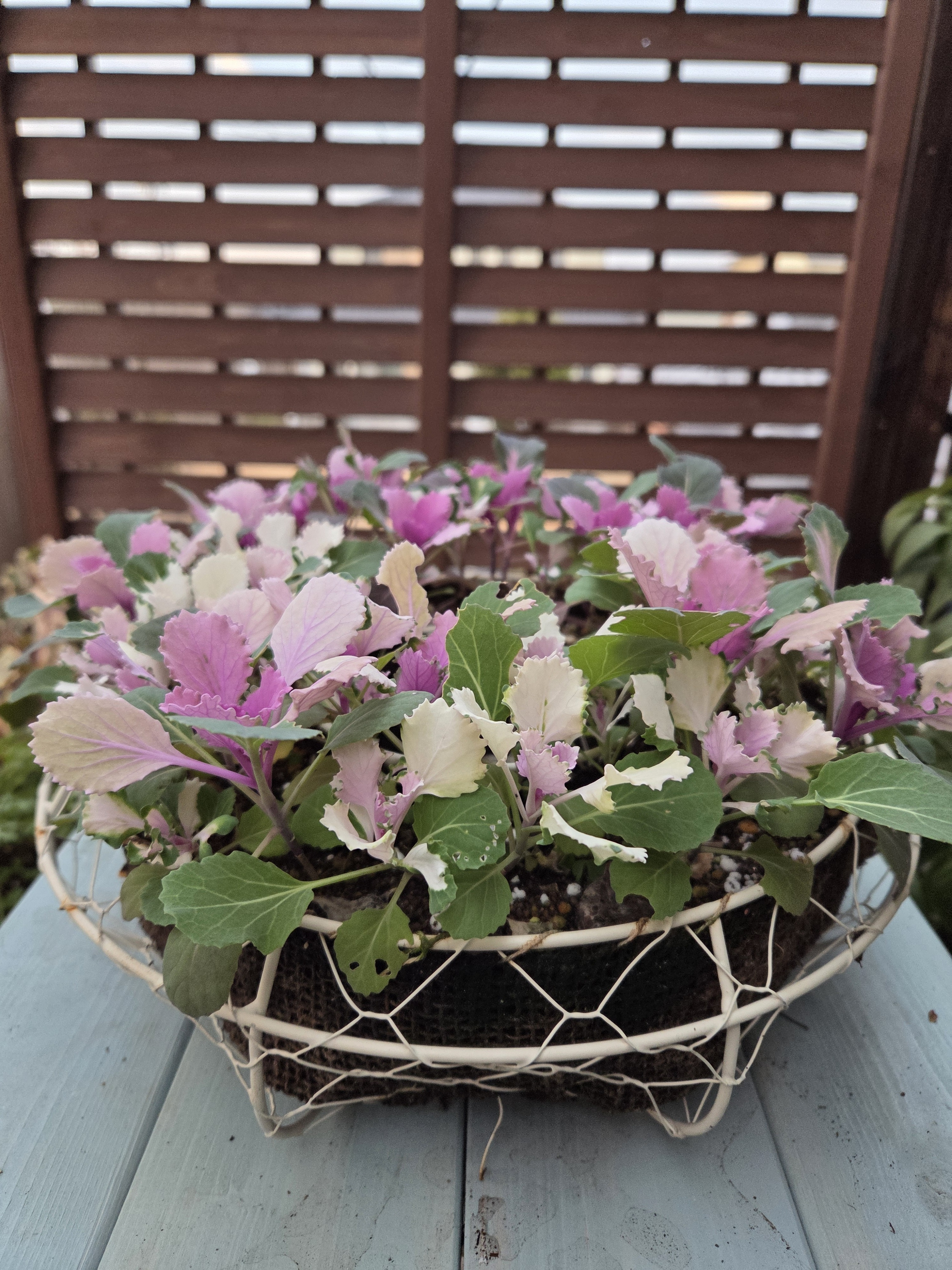 投稿を表示Himawari さん、ホワホワっ葉牡丹💚💜🤍、素敵です✨️😍。