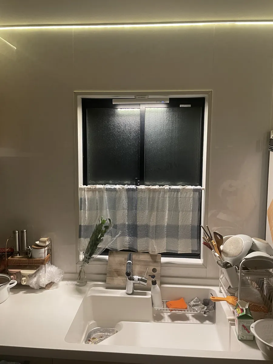 洗う場所も窓につけたセンサーライトが点灯してくれます。